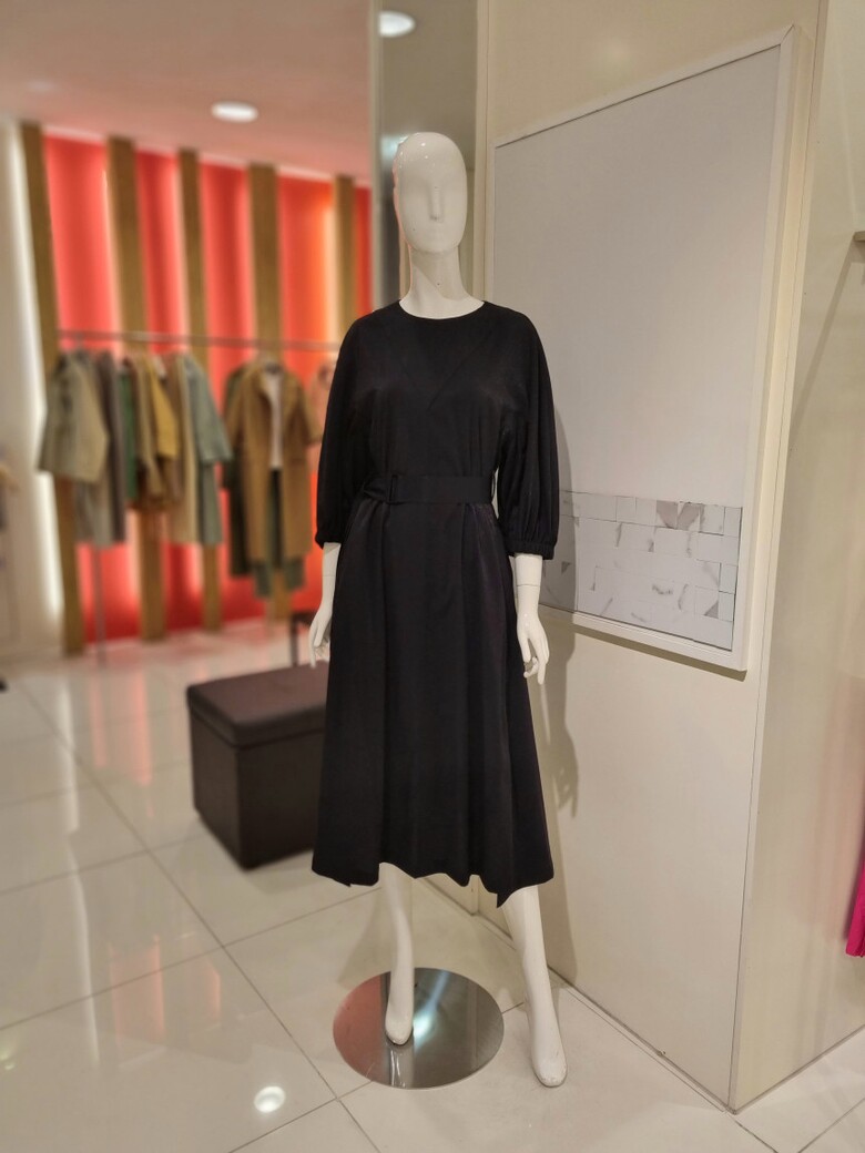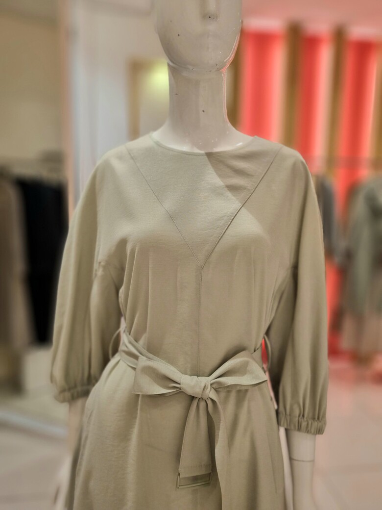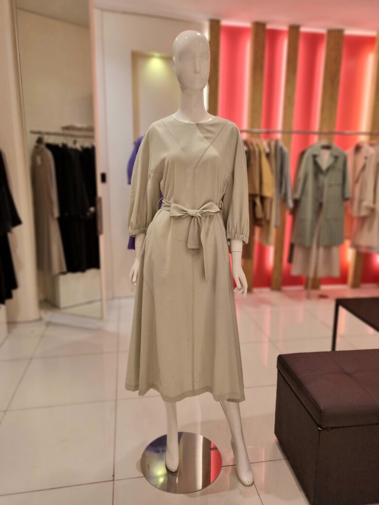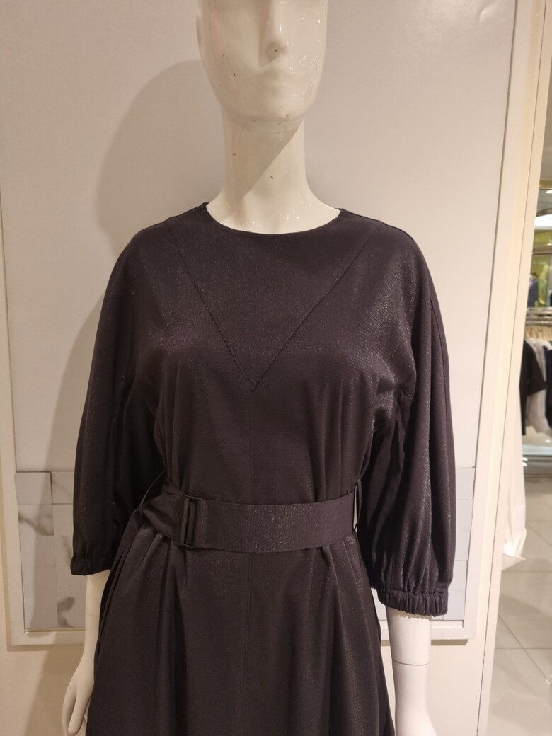 허리 벨트연출되는 뒤면 셔링이 포인트로 펄감이있는 롱기장 원피스입니다.
