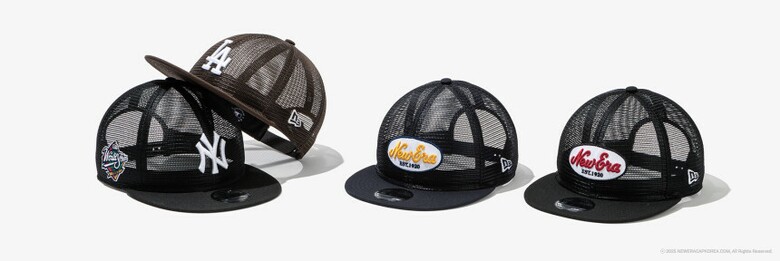 메쉬 시리즈 스냅백 컬렉션을 소개합니다. 이번 컬렉션은 플라스틱 SNAP이 장착된 9FIFTY SNAPBACK으로 제작되었습니다. 시원한 착용감을 위해 올 메쉬로 통풍성에 강점을 두었습니다. 2종은 MLB의 대표 인기 구단인 뉴욕 양키스와 LA 다저스의 팀 로고를 전면에 배치하고 월드 시리즈 패치를 측면에 부착하였으며, 나머지 2종은 모자 전면에 뉴에라 오벌 로고로 포인트를 주었습니다. 4가지 스타일로 만나보실 수 있는 메쉬 시리즈 스냅백 컬렉션으로 쾌적한 여름을 보내세요.