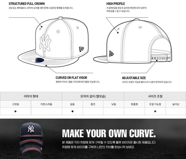 9FIFTY SNAPBACK이란, 59FIFTY와 유사한 형태를 띠며 모자의 후면에 플라스틱 SNAP을 장착하여 사이즈 조절이 가능한 모자입니다. 모자챙 상단에는 9FIFTY SNAPBACK을 상징하는 스티커가 부착되어 있으며, 모자의 챙은 59FIFTY와 동일하게 Flat Visor로 제작됩니다. 이는 제품의 이동 시 파손을 방지함과 동시에 개인의 취향에 따라 다양한 각도로 구부려 착용 할 수 있도록 고안된 것이며, 제품의 안쪽 자체 개발된 Sweat 밴드는 탁월한 땀 흡수력과 편안한 착용감을 제공합니다.