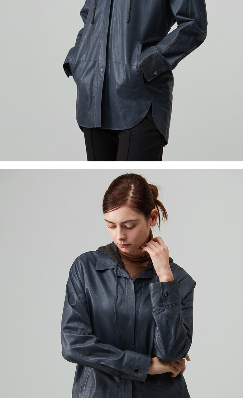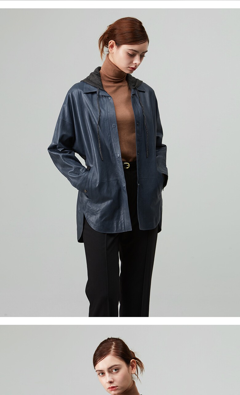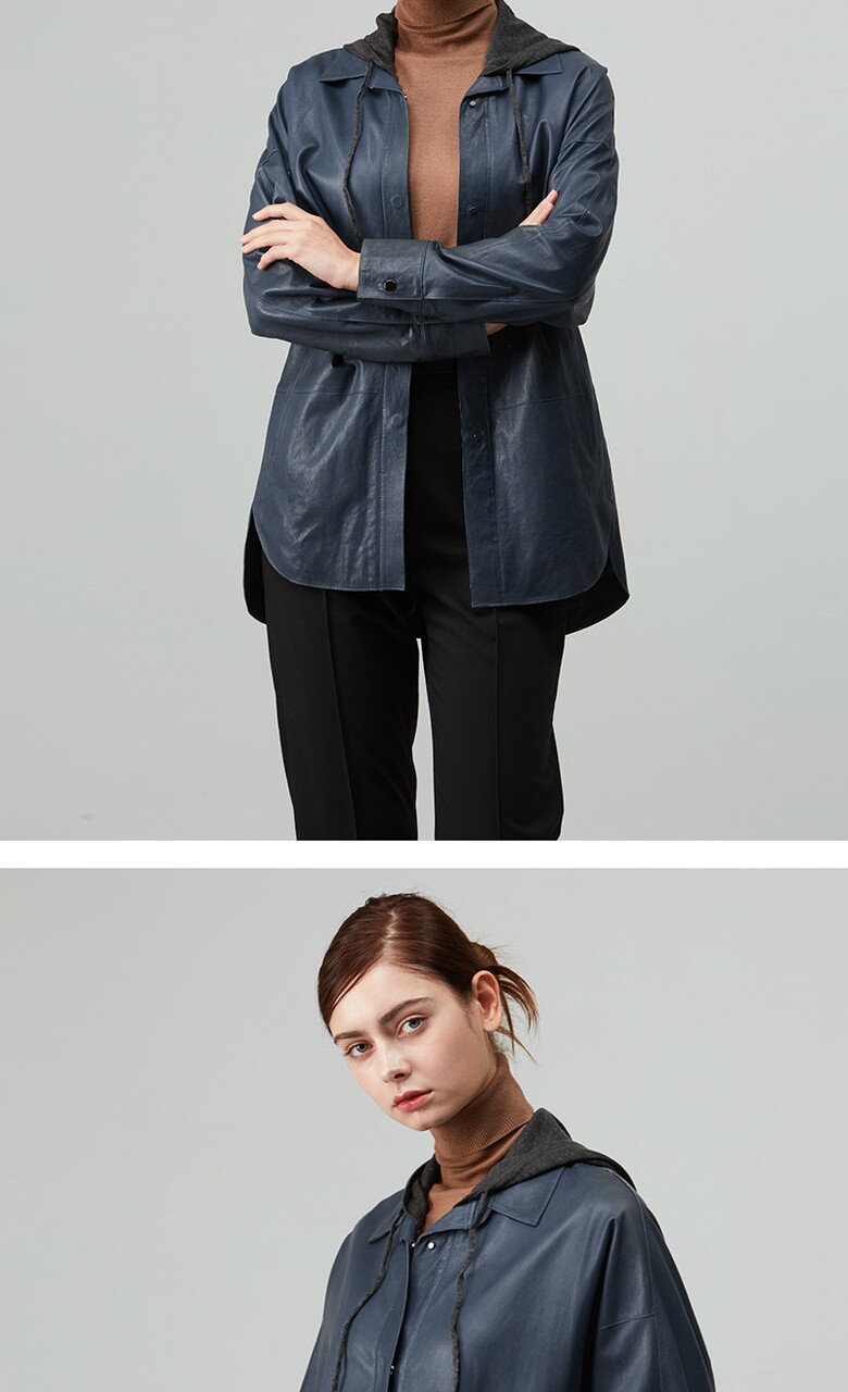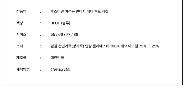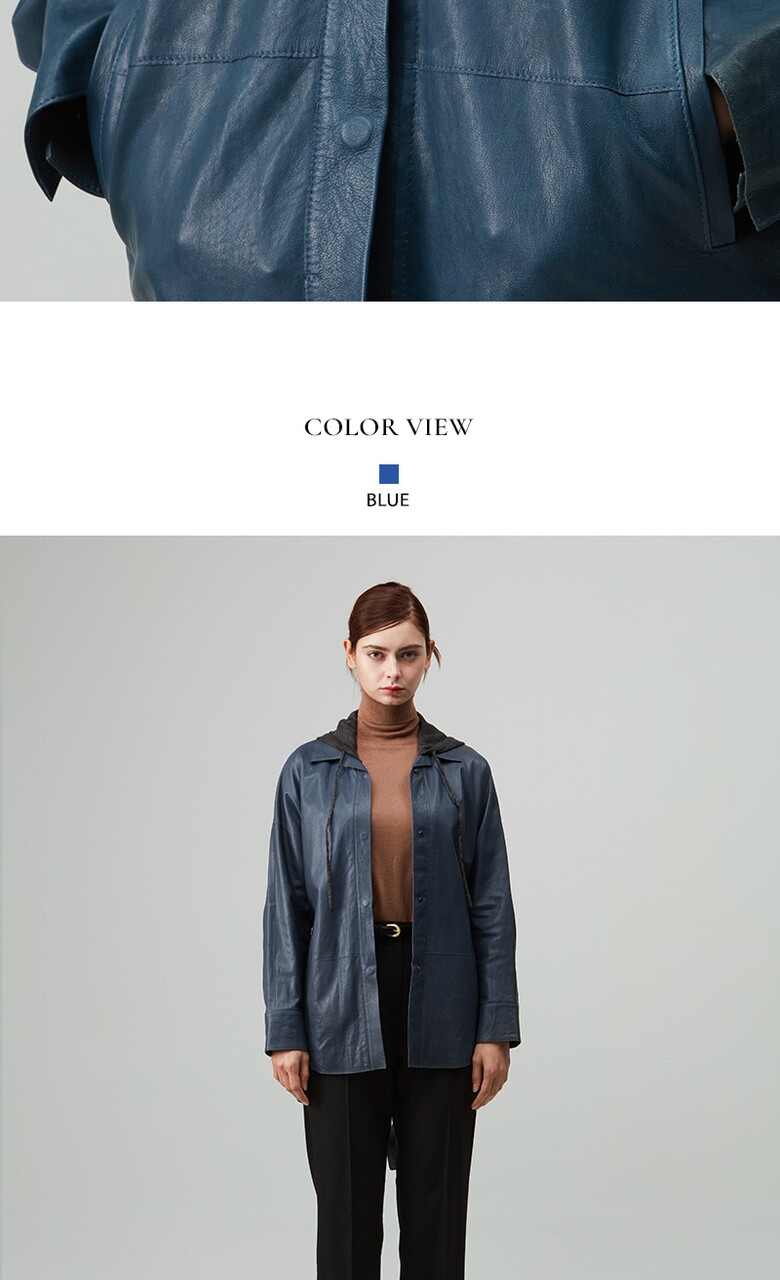 후스타일 여성 빈티지 레더 후드 자켓 블루