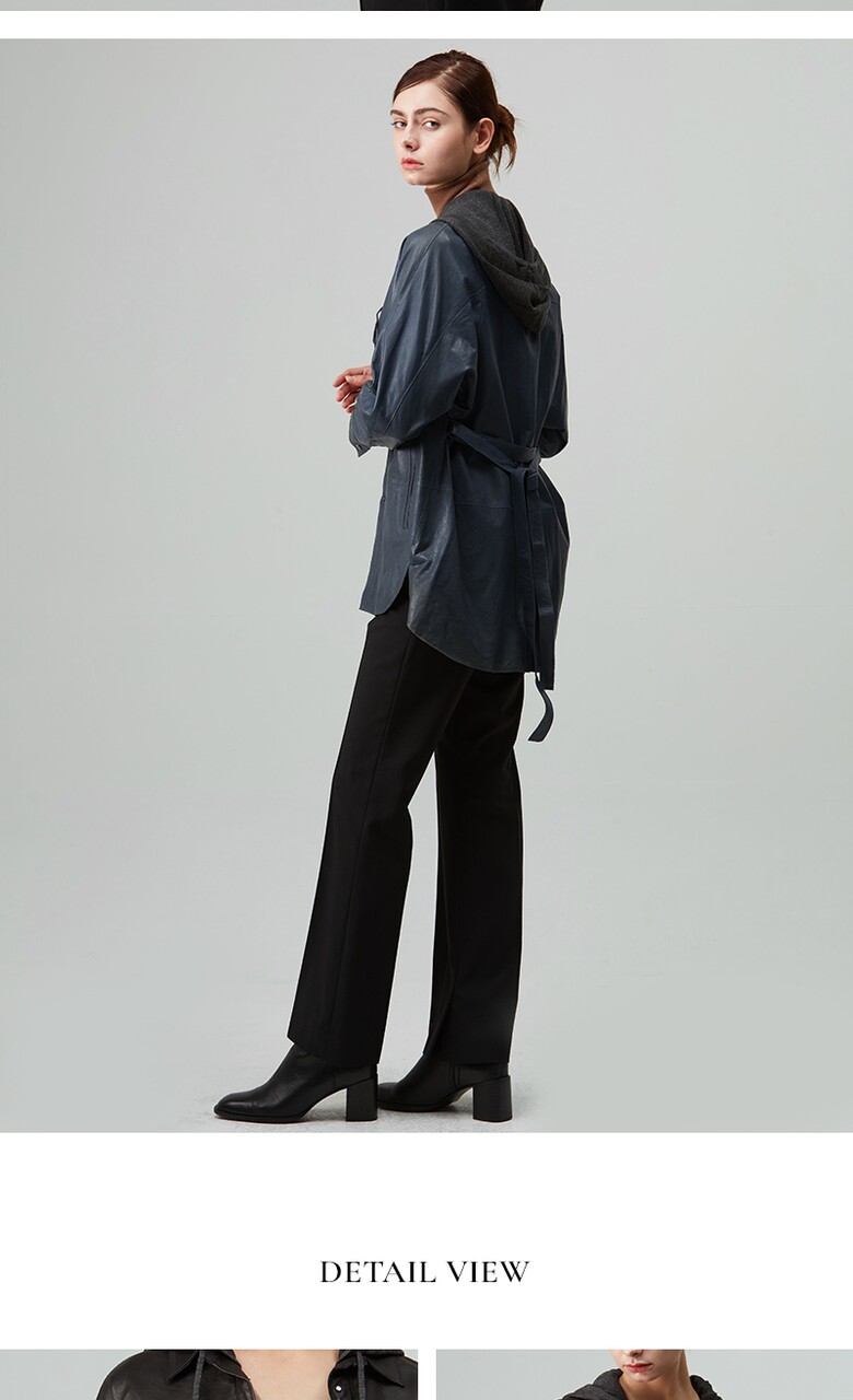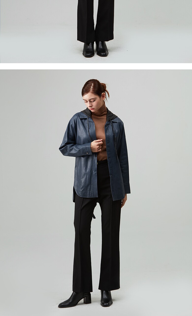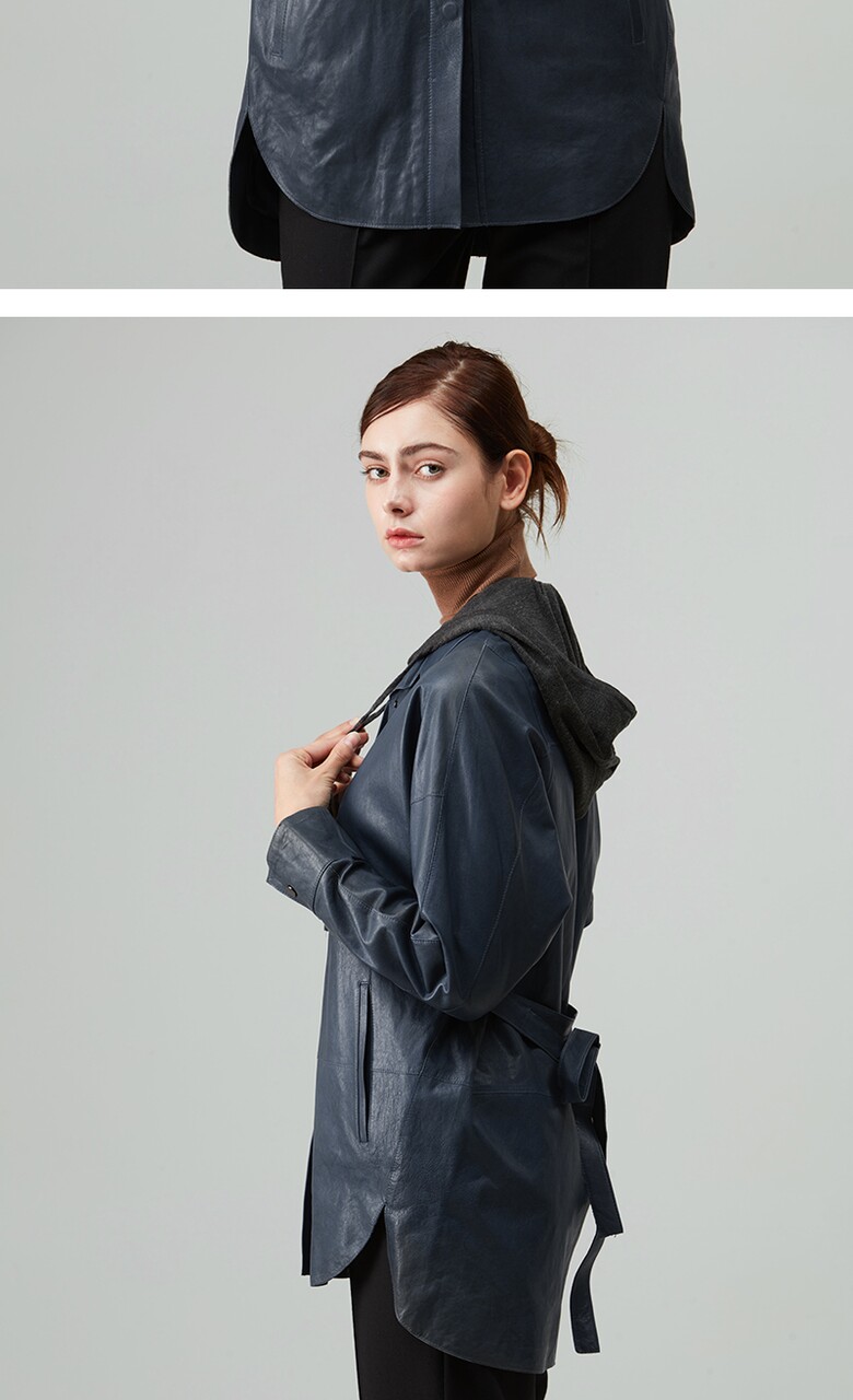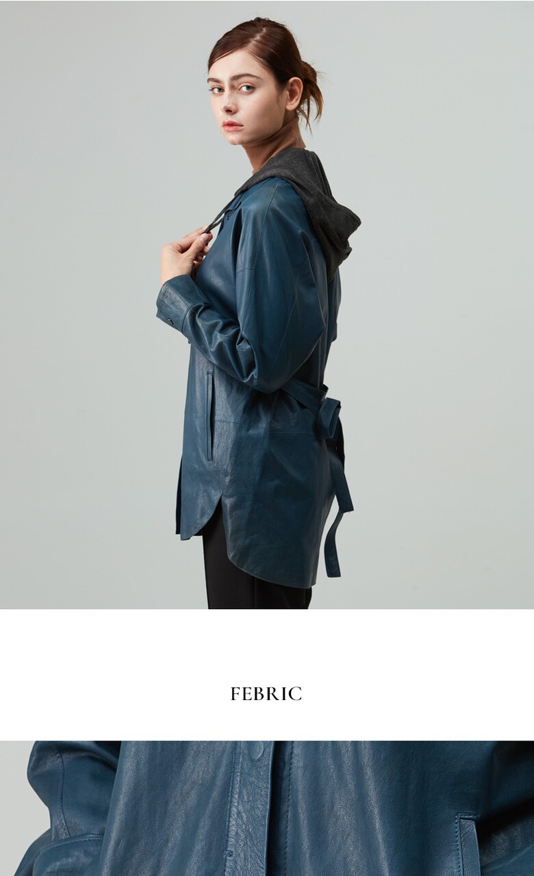 후스타일 여성 빈티지 레더 후드 자켓 블루