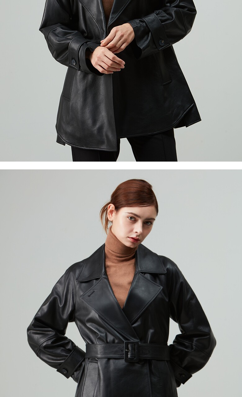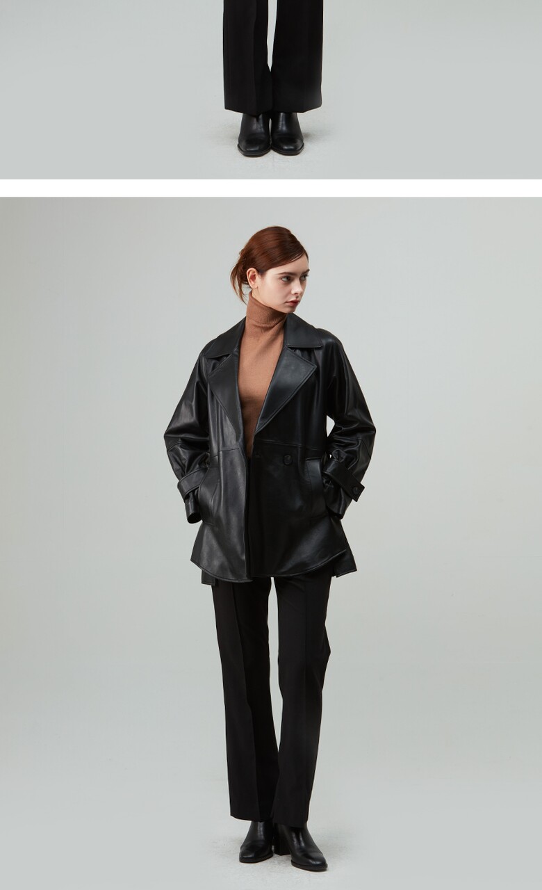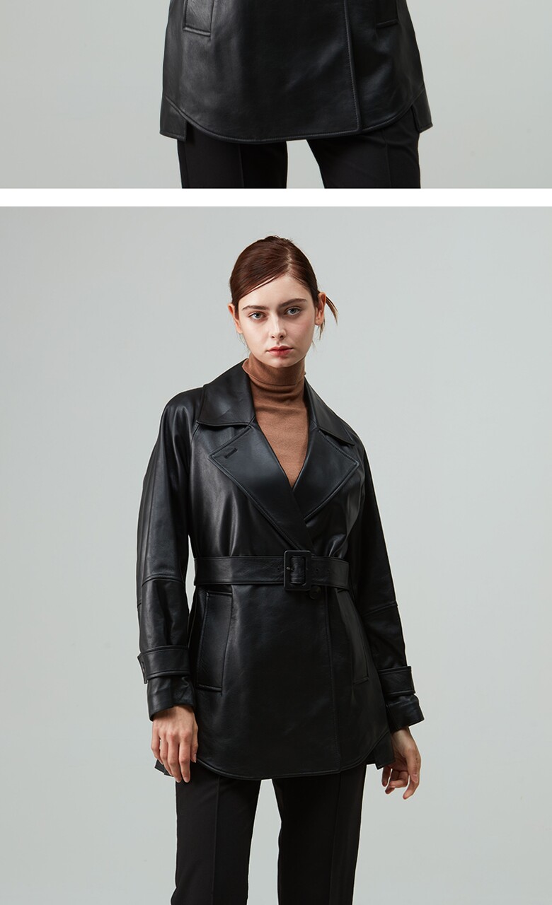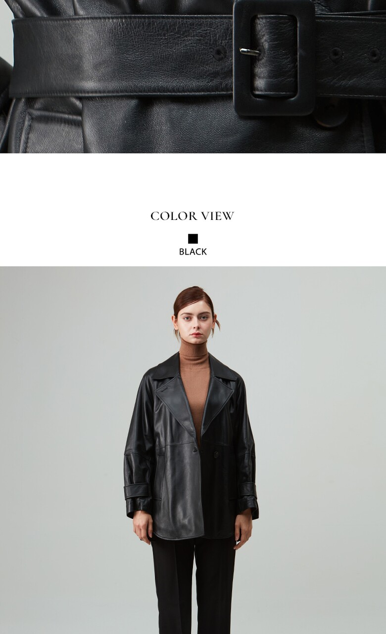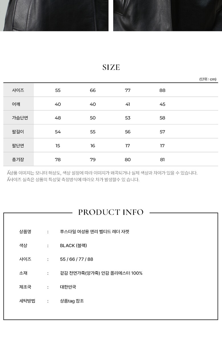 후스타일 여성 앤리 벨티드 레더 자켓 블랙