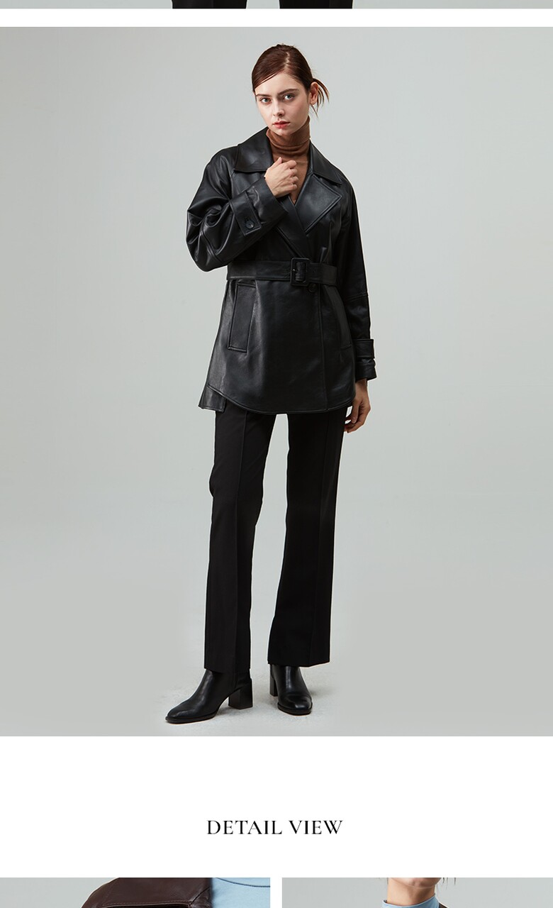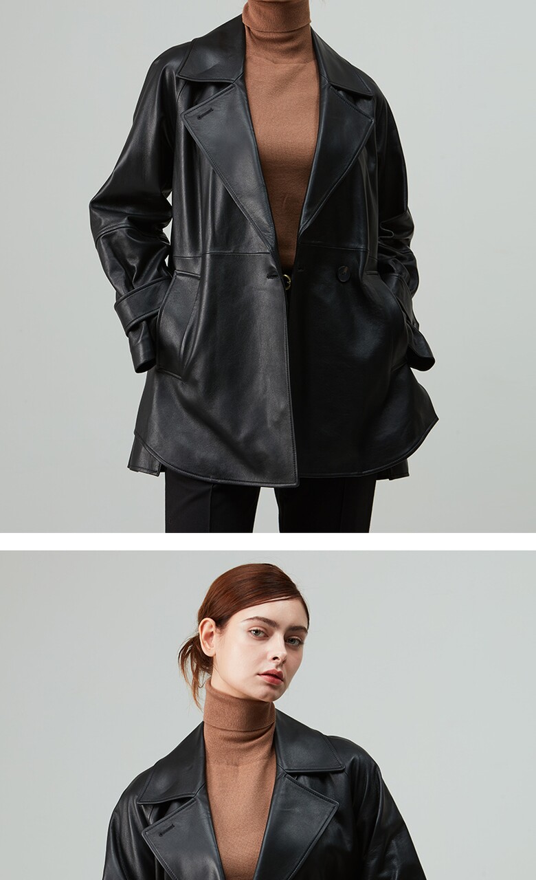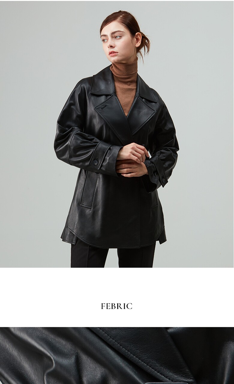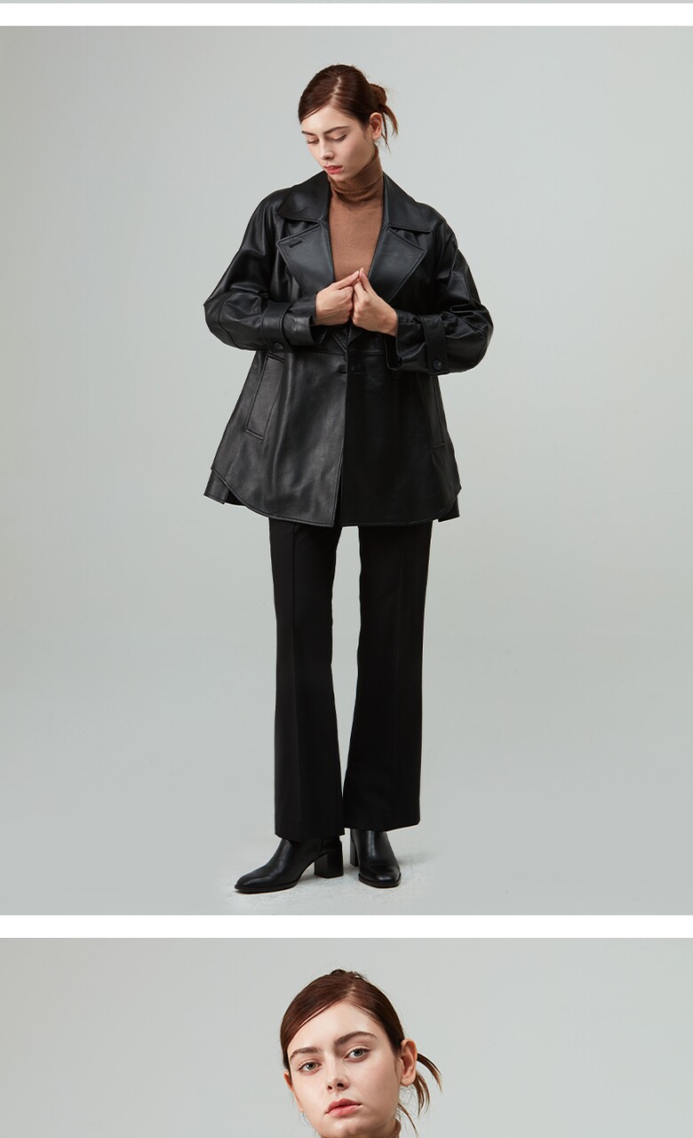 후스타일 여성 앤리 벨티드 레더 자켓 블랙