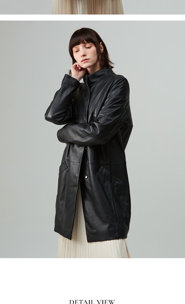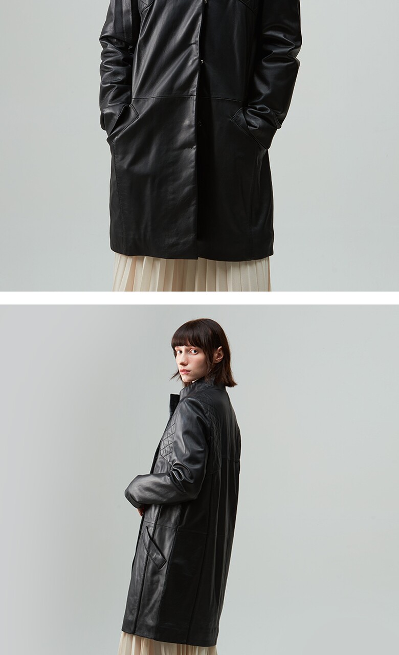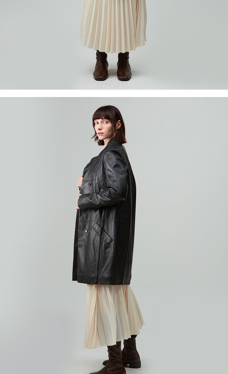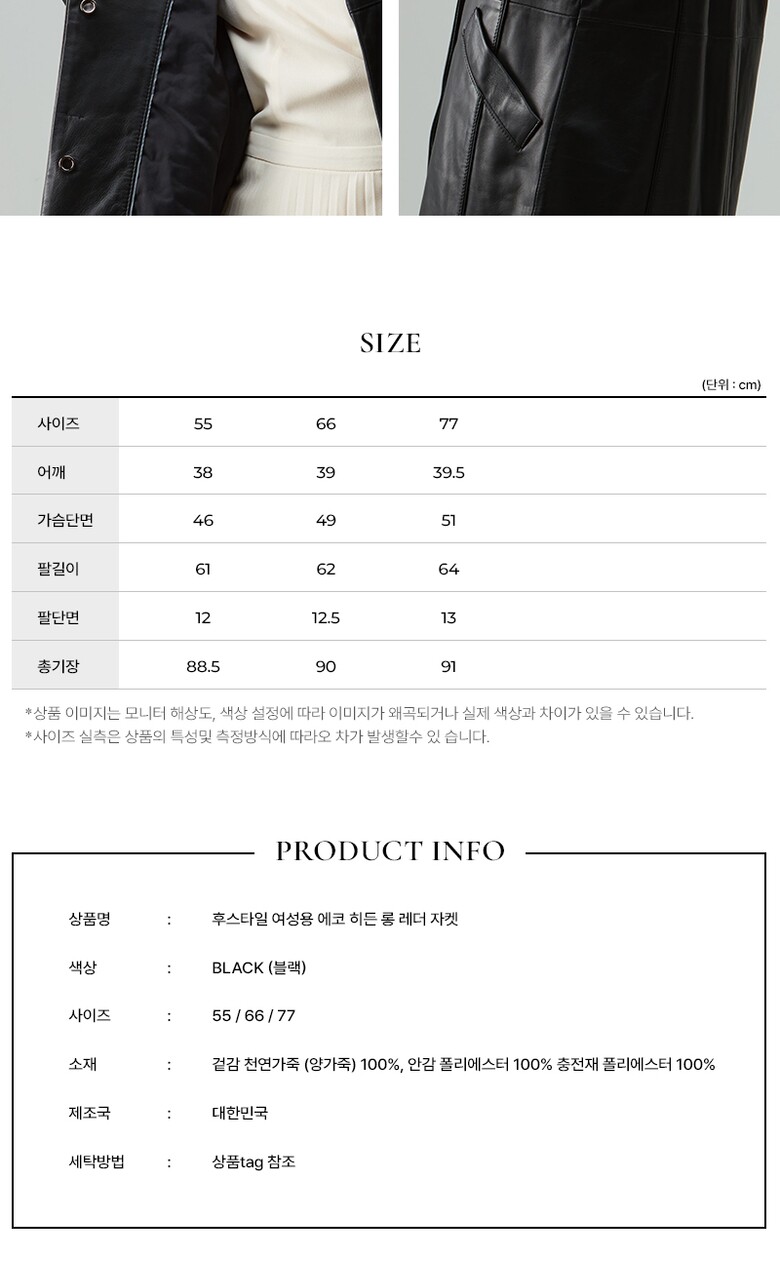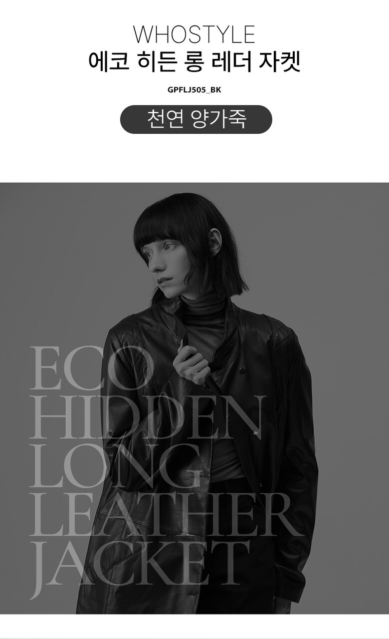 후스타일 여성 히든 롱 레더 자켓 블랙