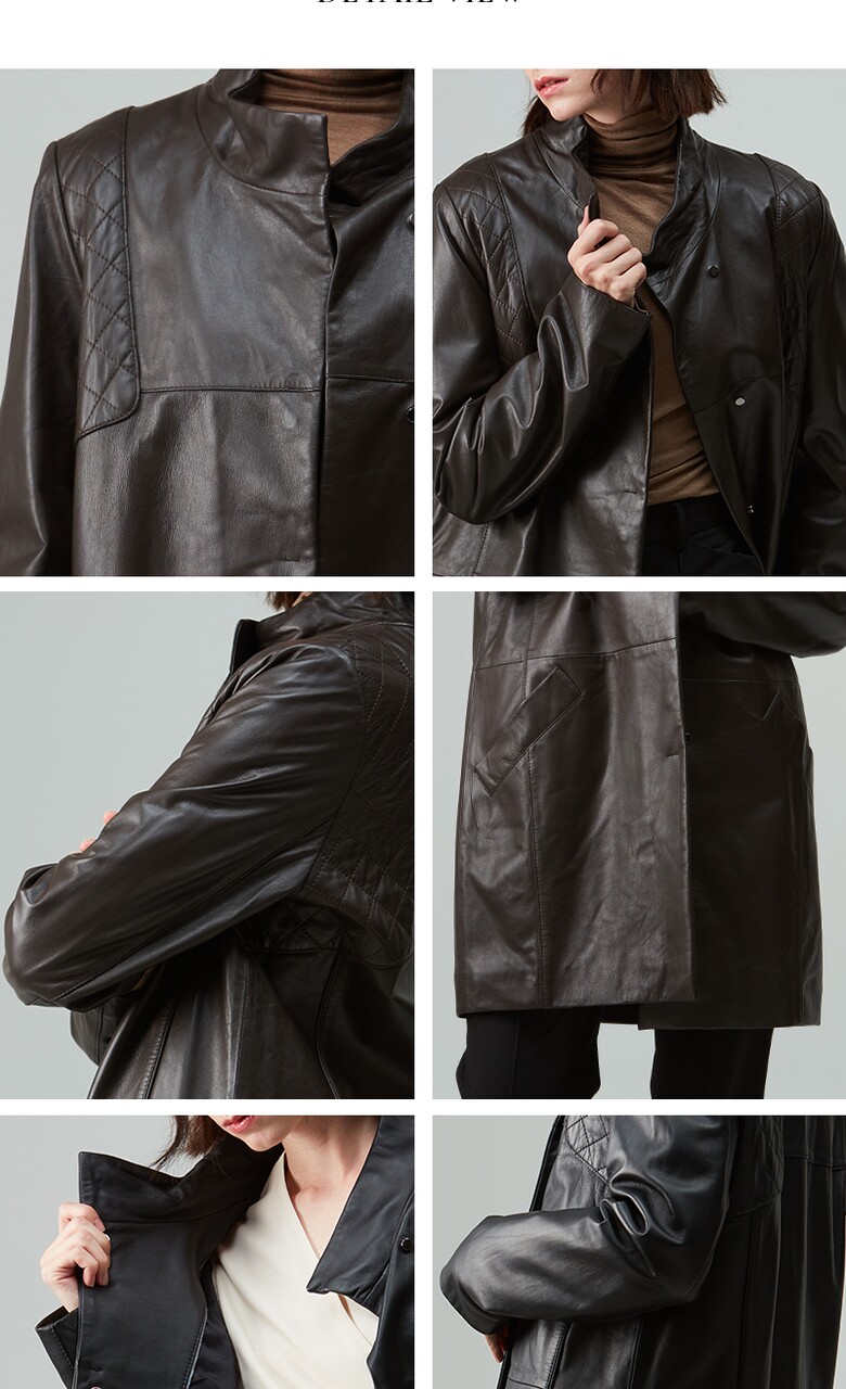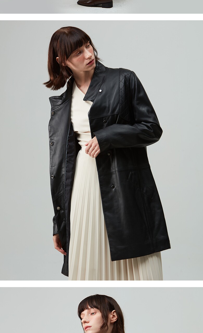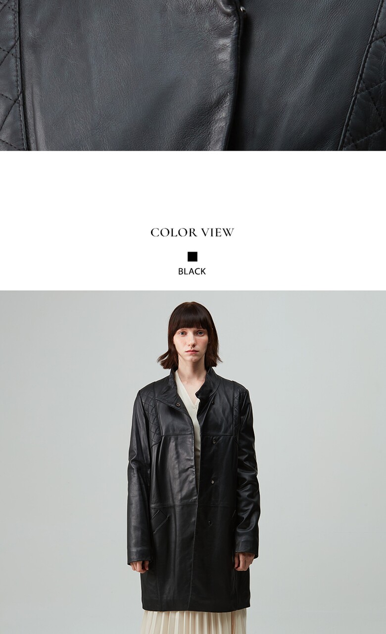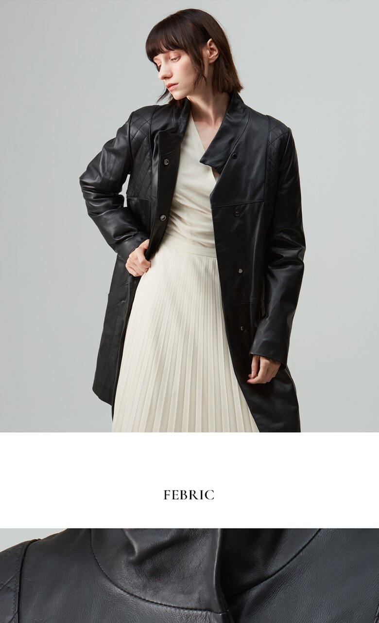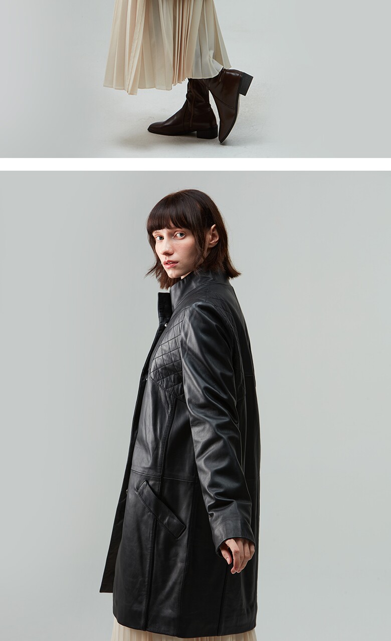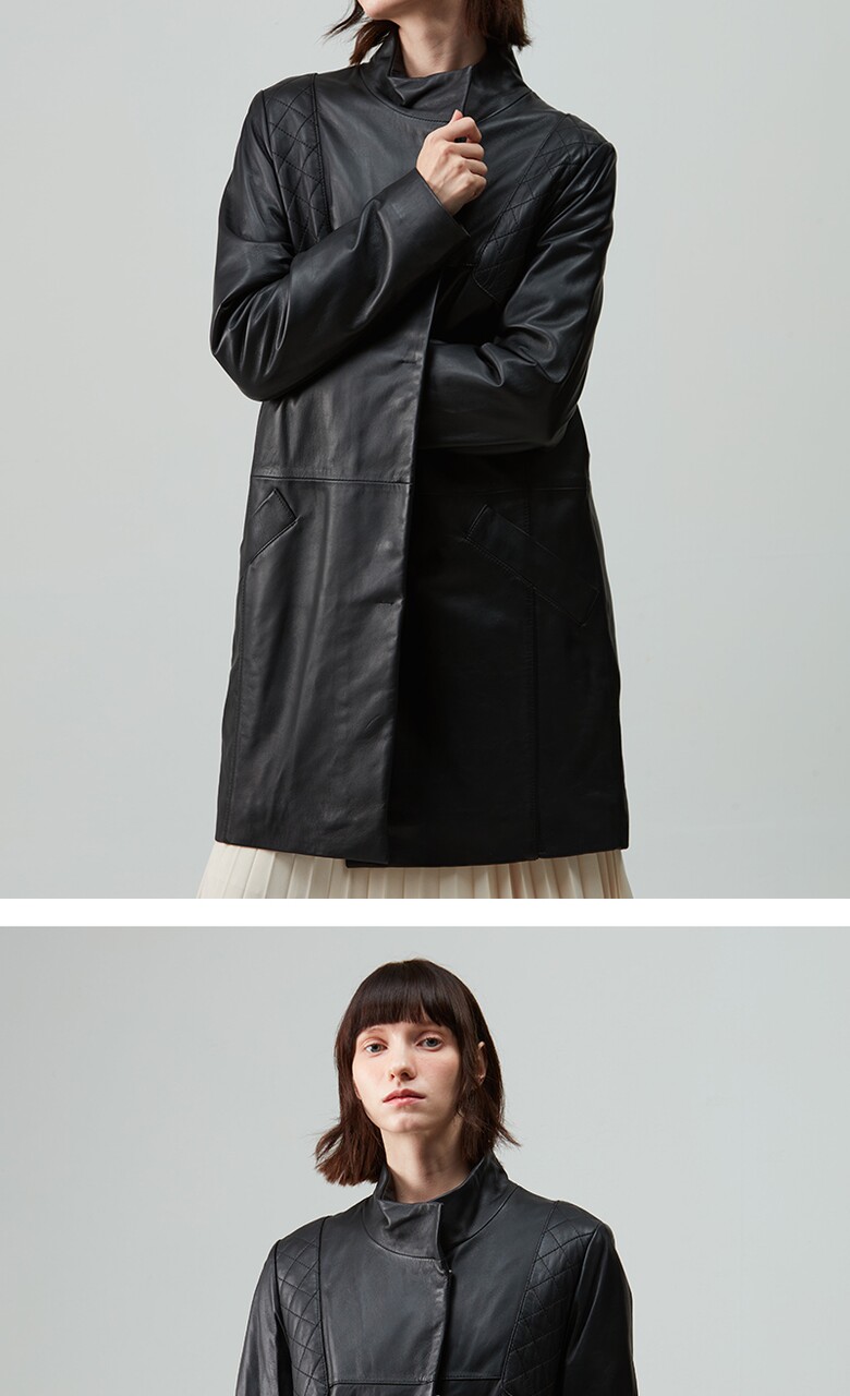 후스타일 여성 히든 롱 레더 자켓 블랙