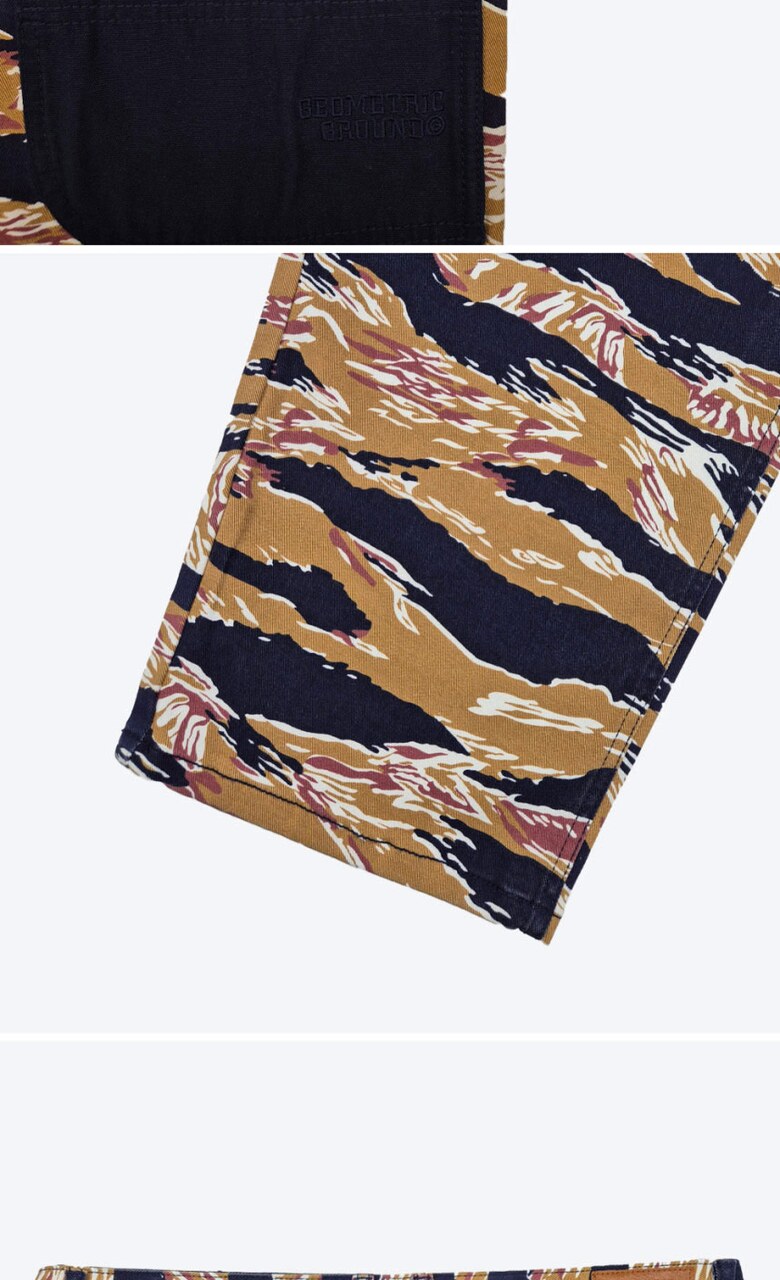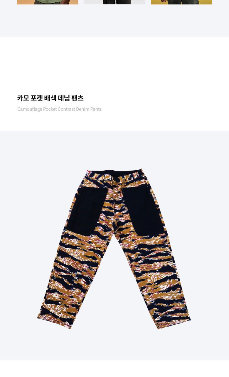 지오메트릭 그라운드 남성 카모 포켓 배색 데님 팬츠 베이지