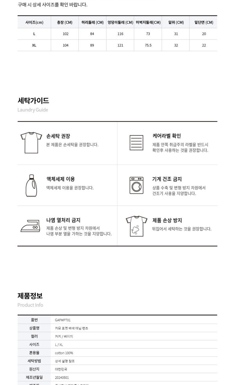 6. 세탁방법 및 취급시 주의사항 | 상품상세 참조 |