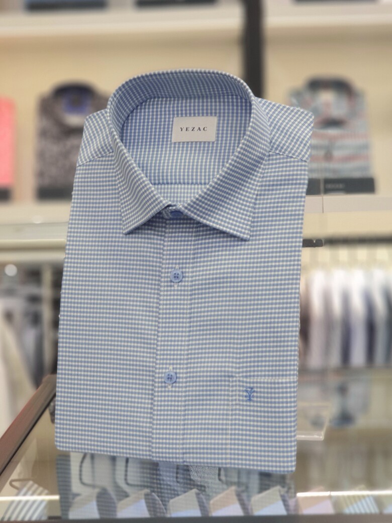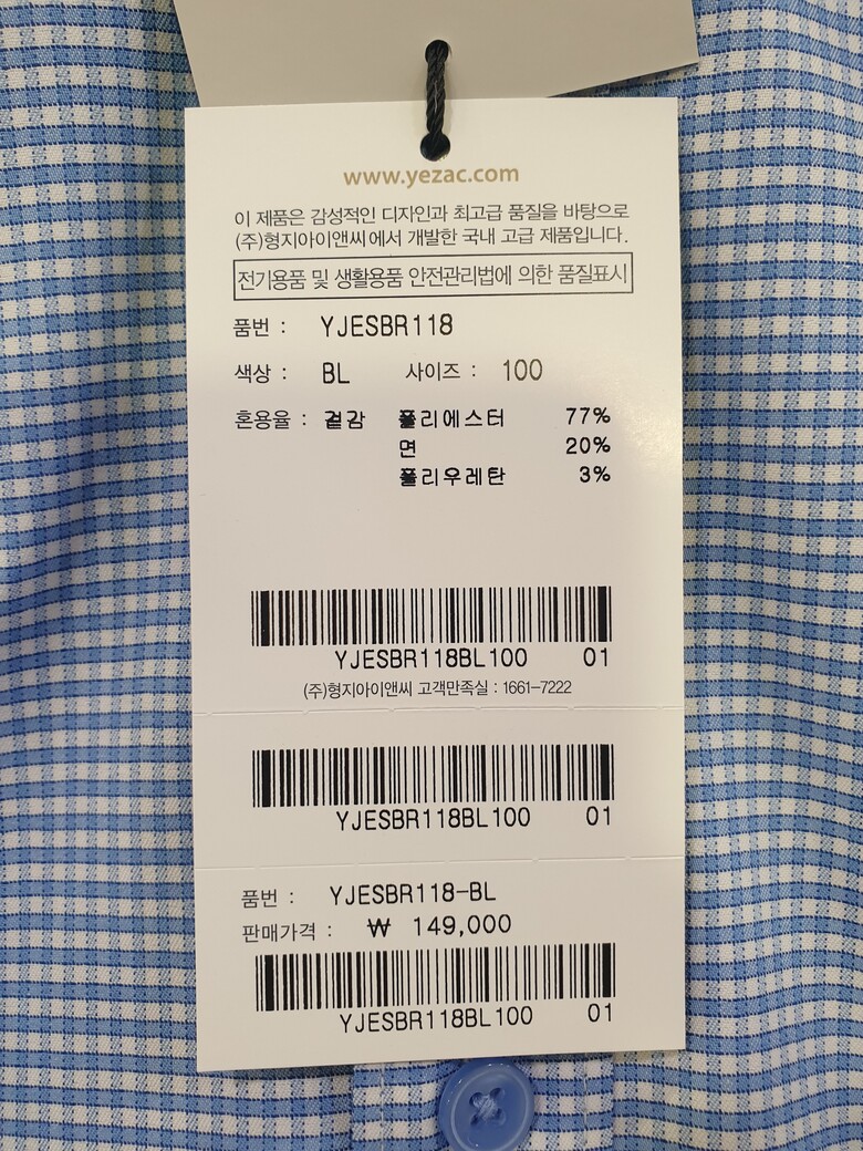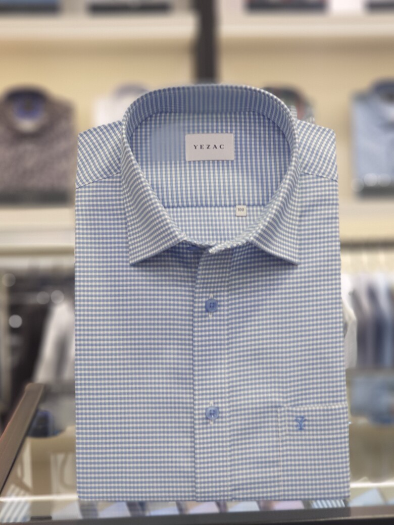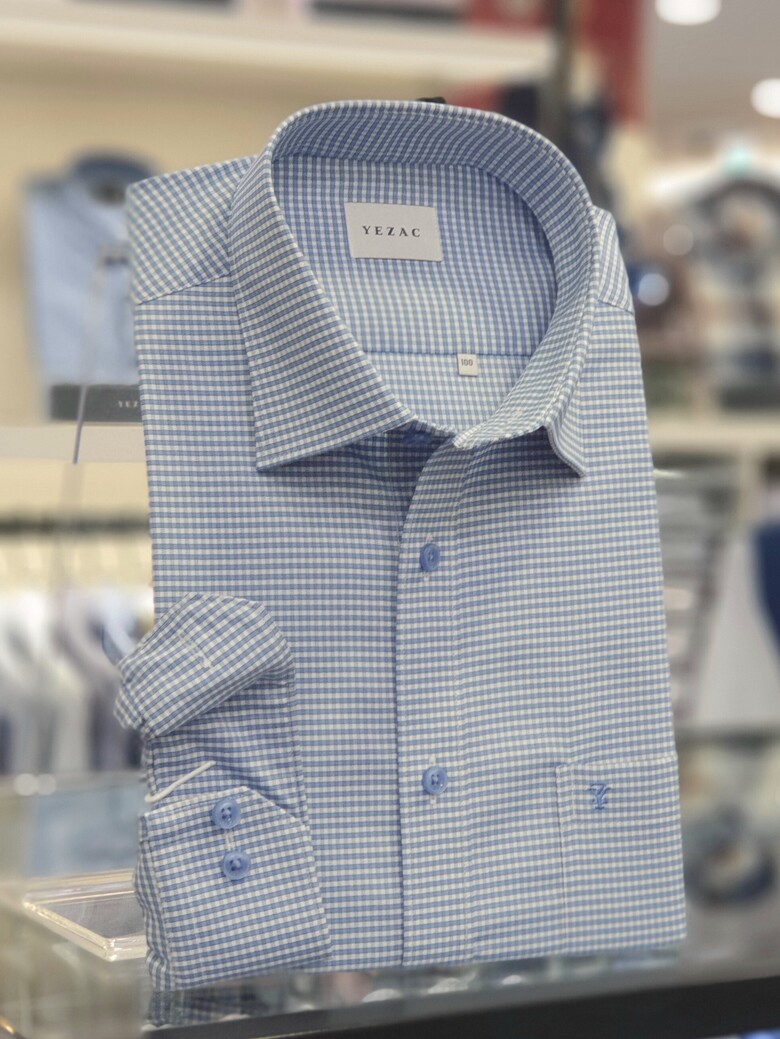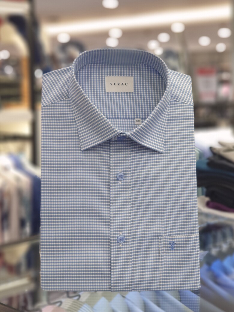 [예작셔츠] 면혼방 체크 사방스판 링클프리 일반핏셔츠 YJE SBR 118 BL