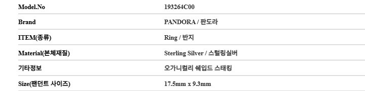 | 1. 소재 / 순도 / 밴드재질 | 실버 / 쥬얼리 - 스털링실버 |