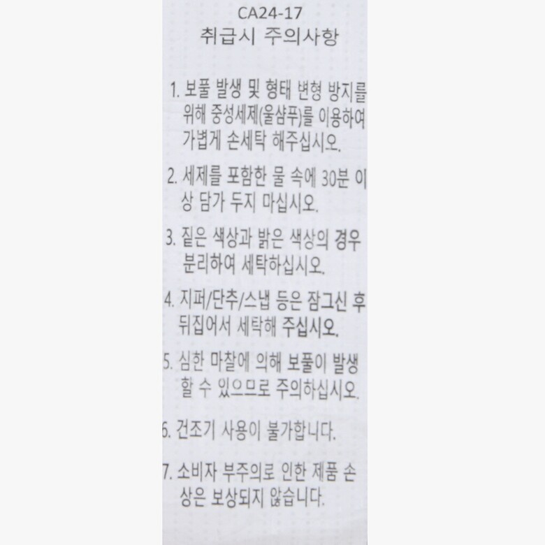 | 6. 세탁방법 및 취급시 주의사항 | 상품상세참조 |