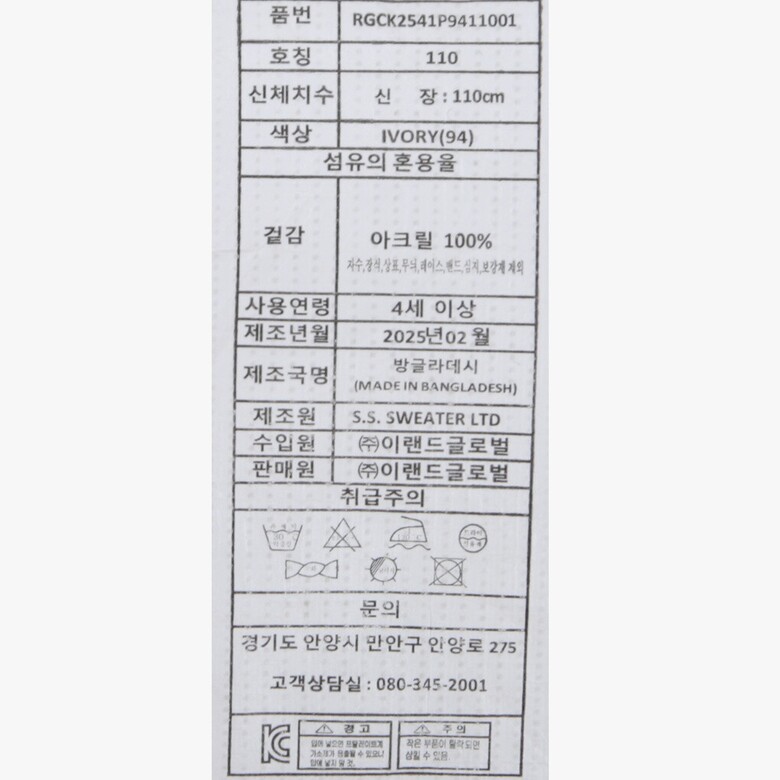 | 1. 제품 소재 (섬유의 조성 또는 혼용률을 백분율로 표시, 기능성인 경우 성적서 또는 허가서) | 상품상세참조 |