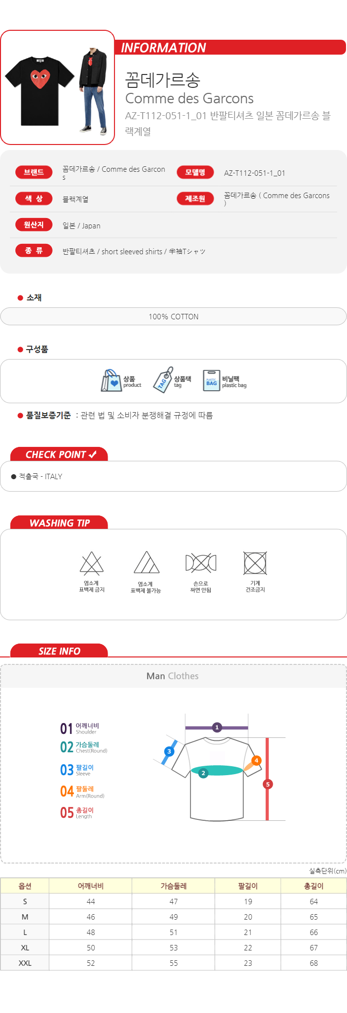 [명품] 꼼데가르송 레드 하트 반팔 티셔츠 AZ T112 051 1