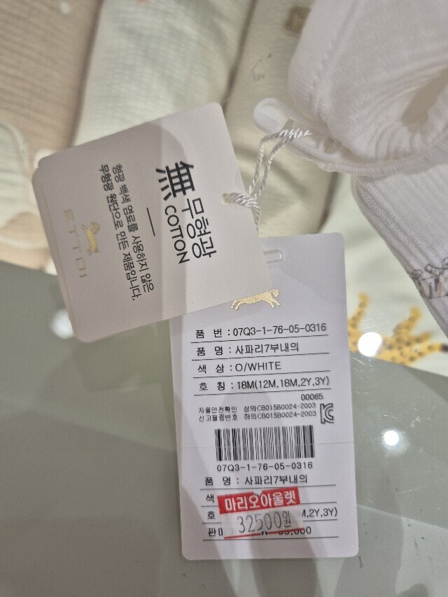 부드러운 면 소재의 칠부 내복입니다