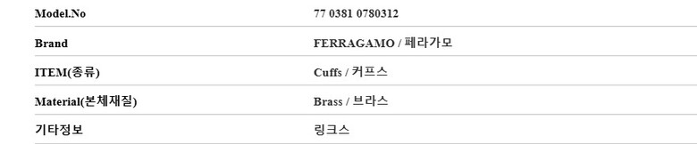 [명품] 페라가모 77 0381 0780312 770381 780312 간치니 링크스 커프스