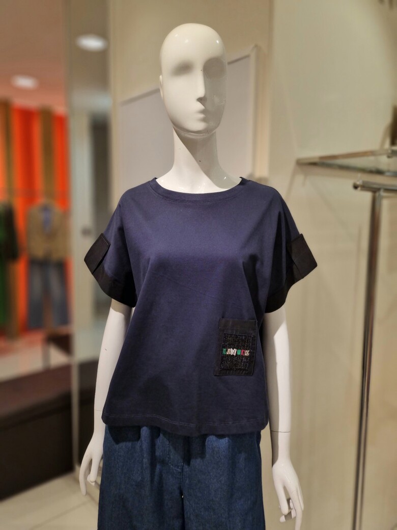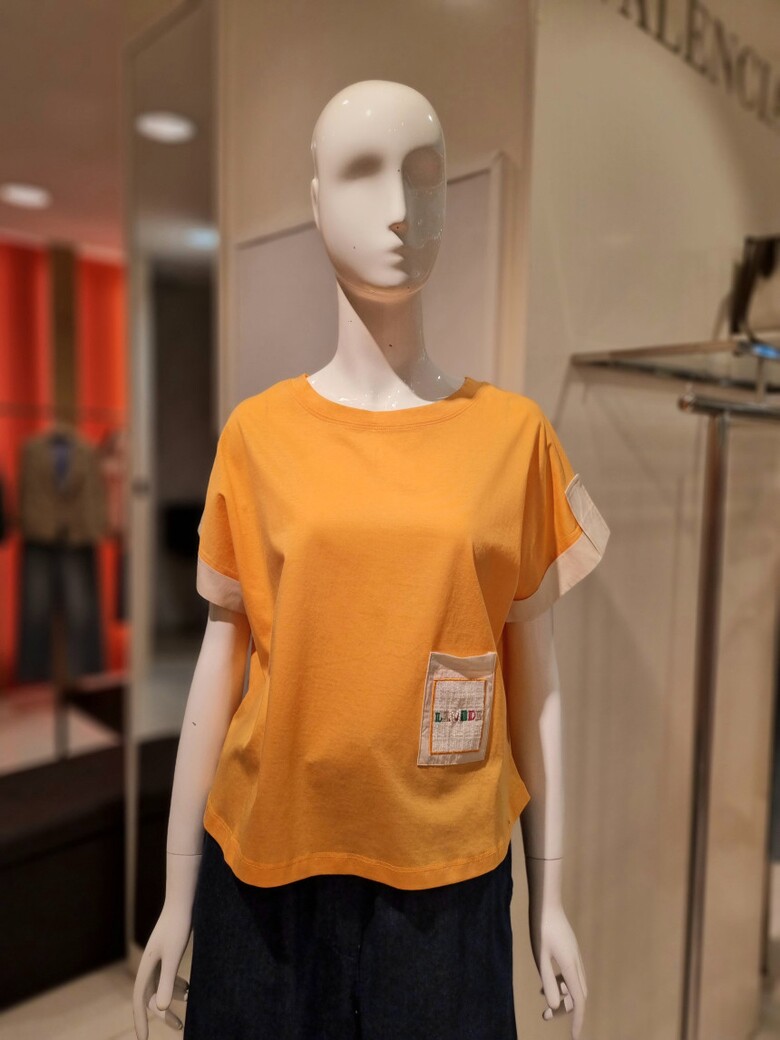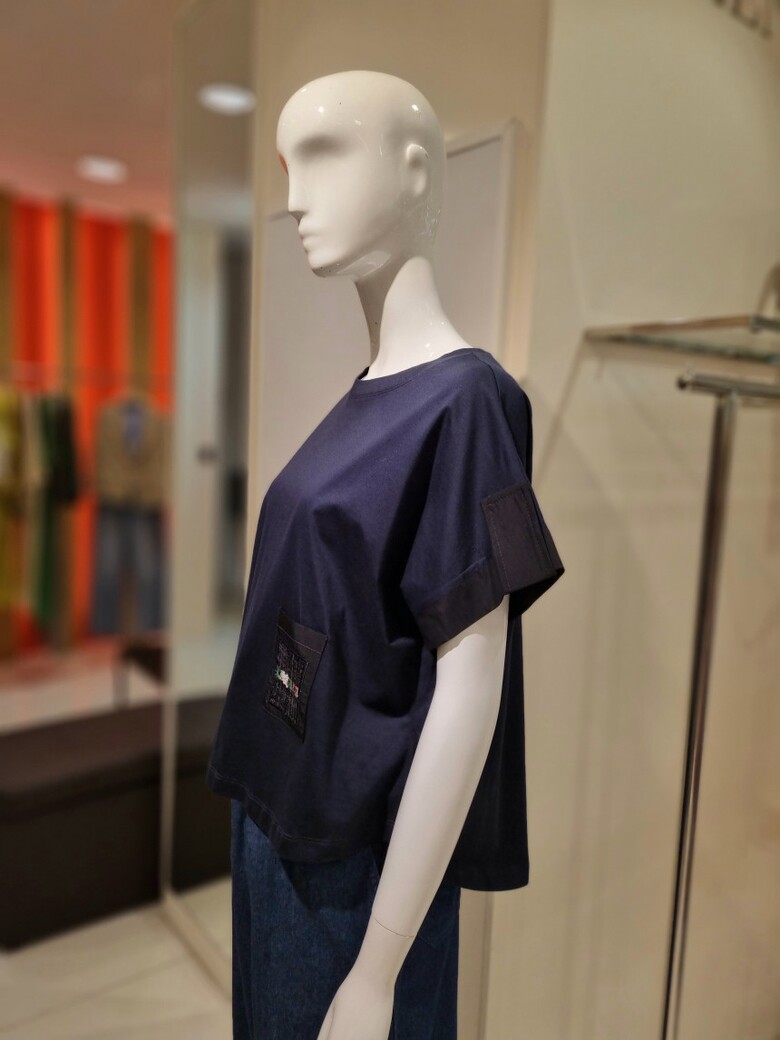앞면한쪽 미니포켓이 포인트가되는 부드러운소재 컷소우입니다.