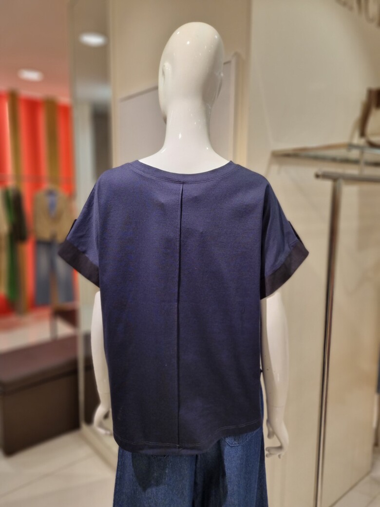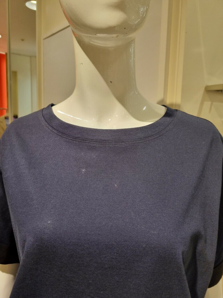 라운드넥에 소재에 배색포인트가 있는 얇은소재감