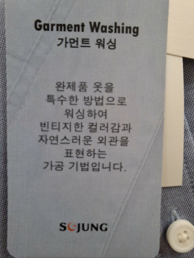주)세정 트레몰로 25SS신상 가먼트워싱 면 100 캐주얼남방 블루 TRHNL5S1411