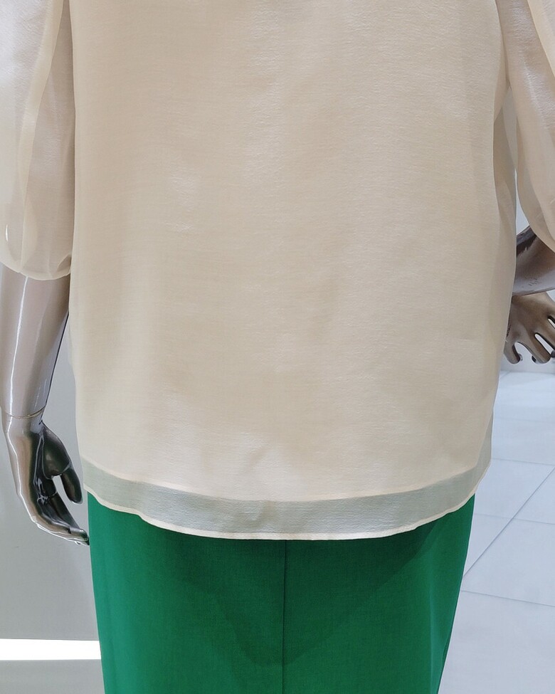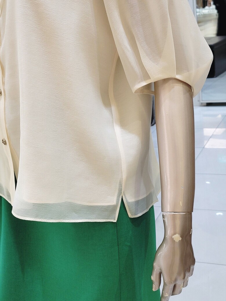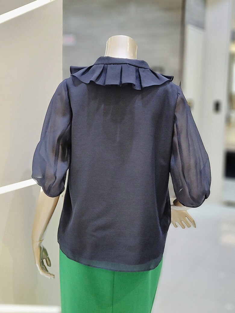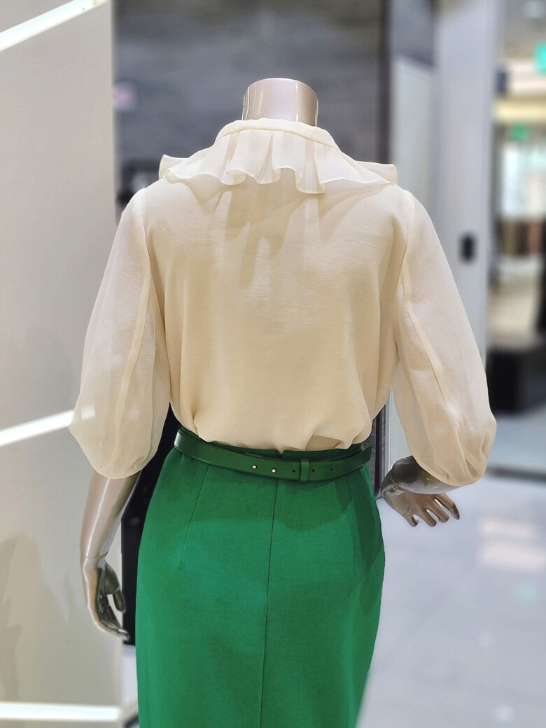 시스루 볼륨 슬리브로 페미닌한 무드 블라우스입니다.