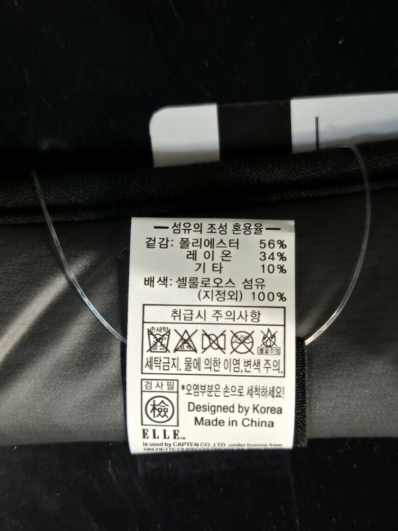 | 2. 소재 | 겉감:폴리에스터56%,레이온34%,기타10% 배색:셀룰로오스섬유100% |