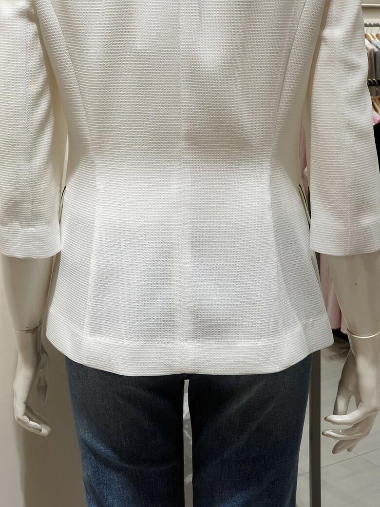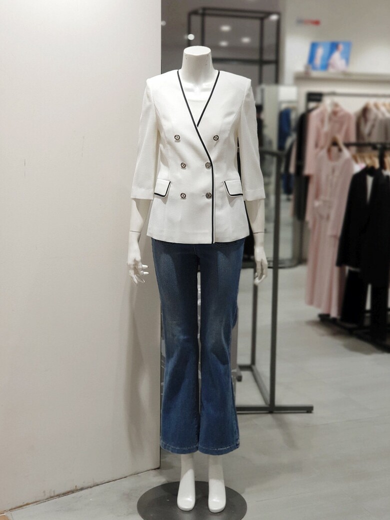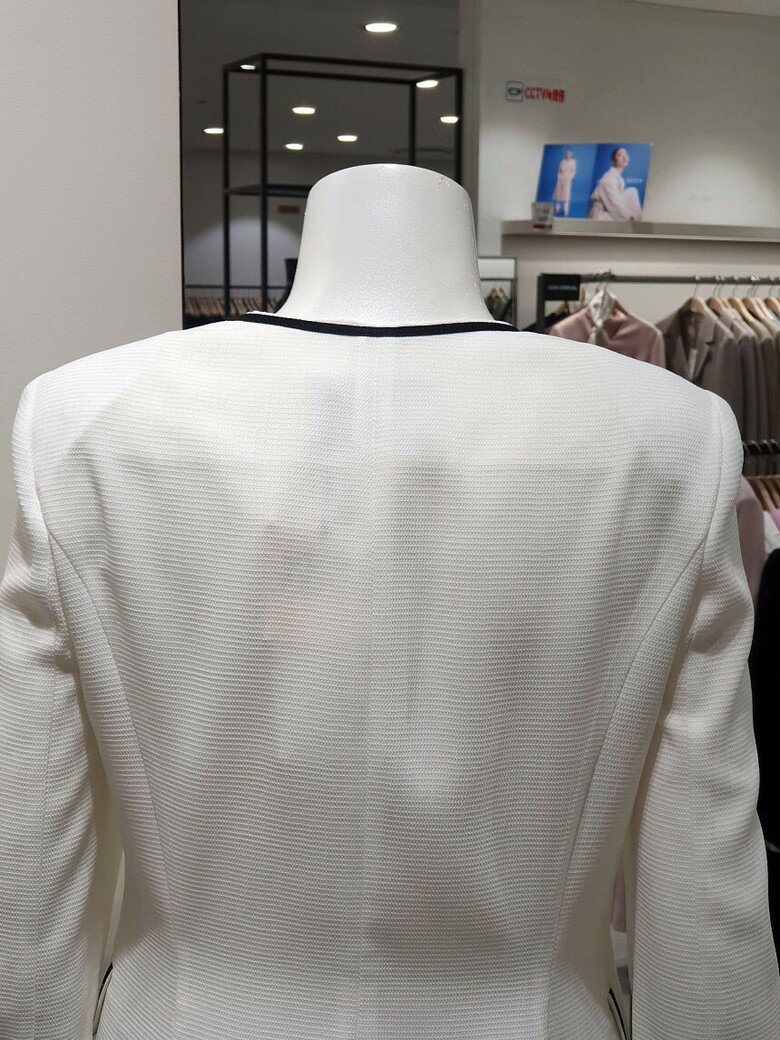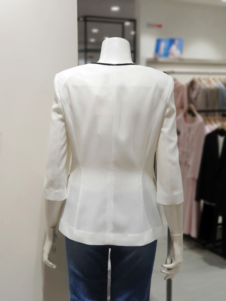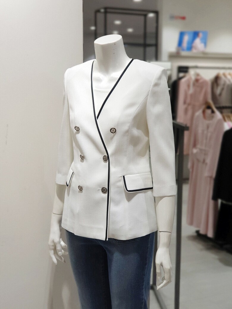 노 칼라 디자인으로 깔끔한 실루엣을 선사하는 재킷입니다.