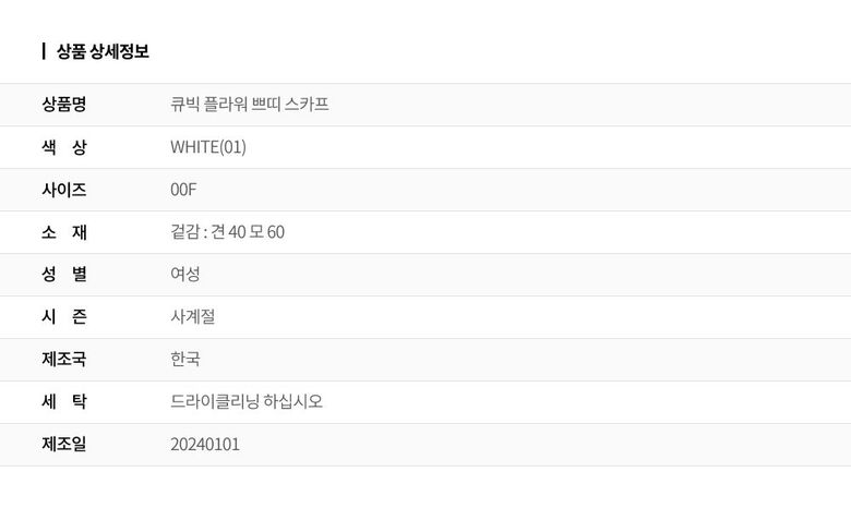 | 2. 소재 | 겉감 : 견 40 모 60 |