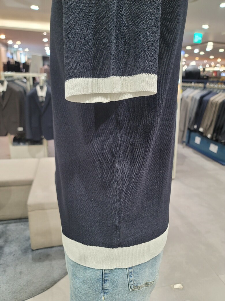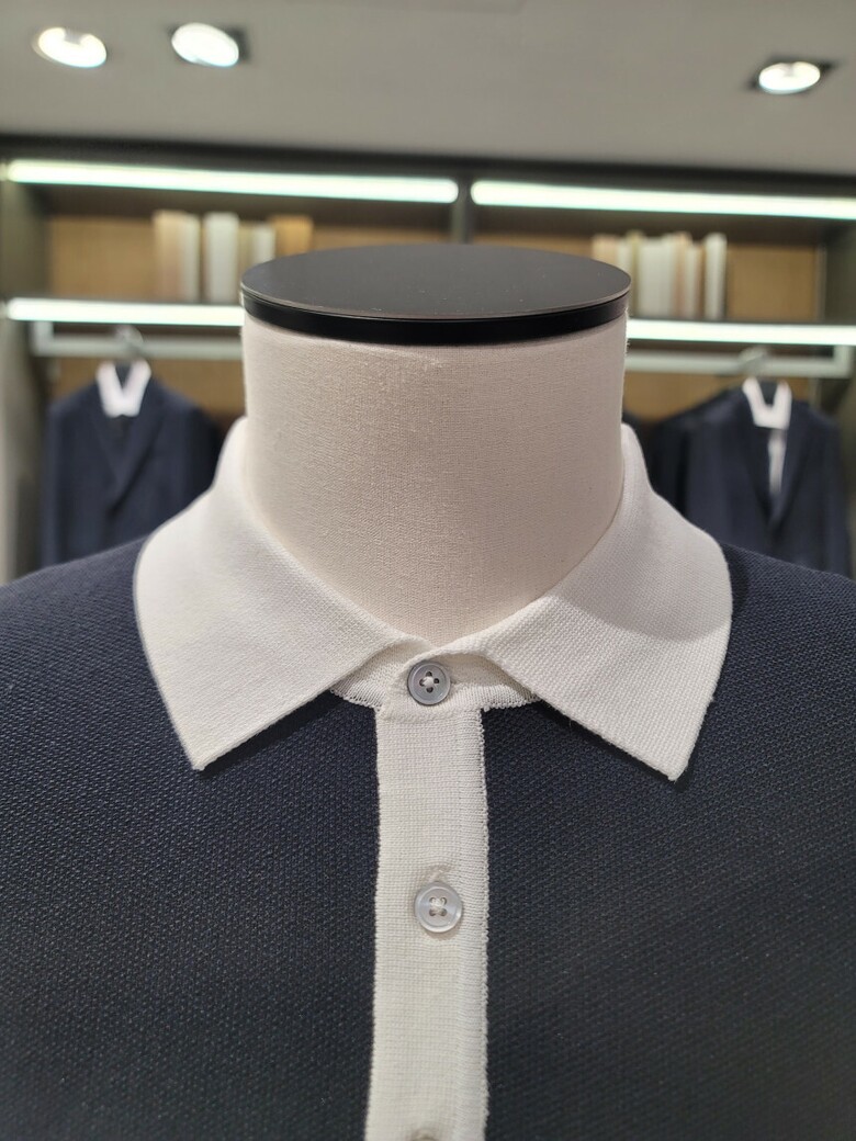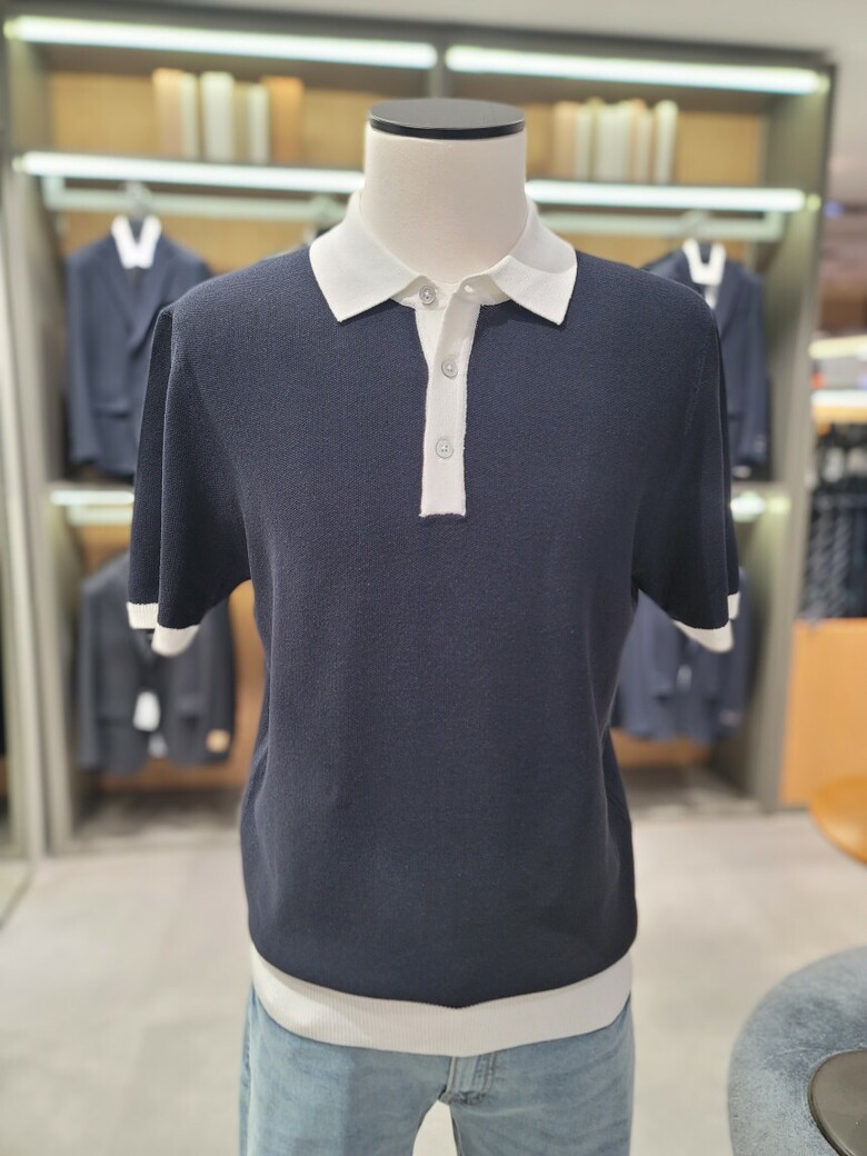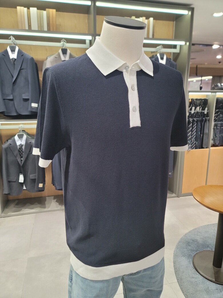 린넨 혼방 카라 배색 티에리 니트 ABE2ET1104 NV
