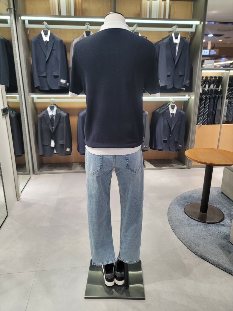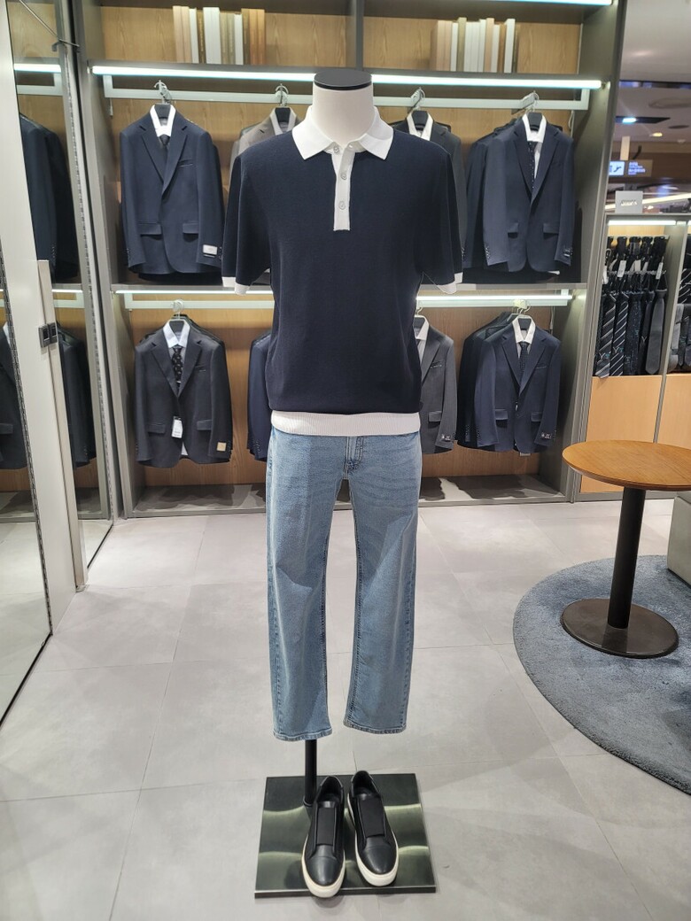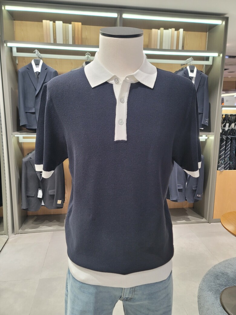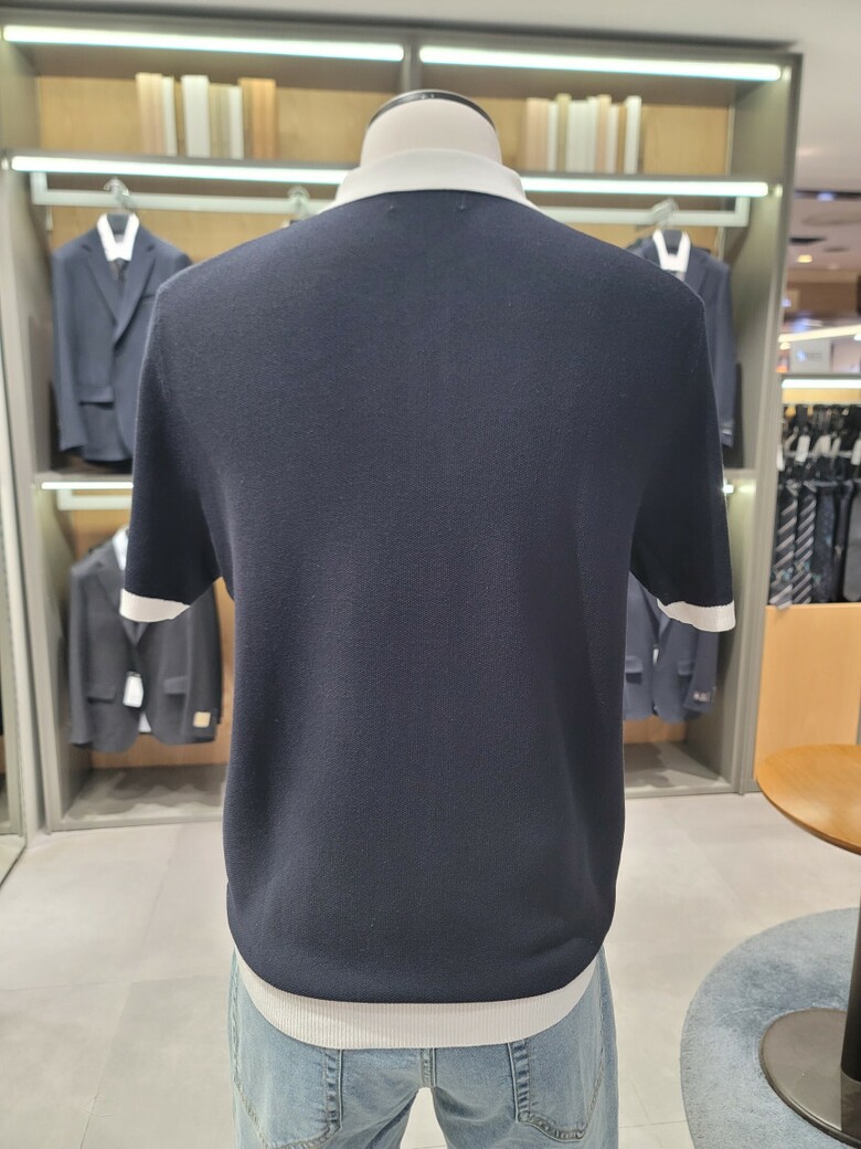 린넨 혼방 카라 배색 티에리 니트 ABE2ET1104 NV