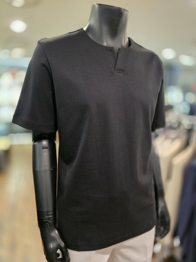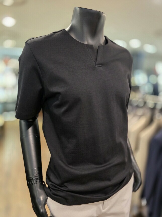 [바쏘옴므] WSZ2-G K 09-ABK S/S 블랙 Y넥 루즈핏 반소매 티셔츠