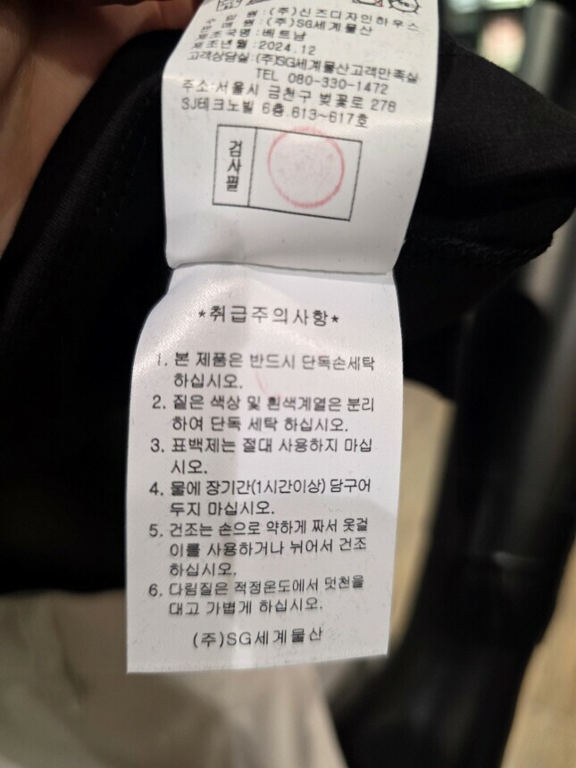 | 6. 세탁방법 및 취급시 주의사항 | 단독 물세탁 하세요 |