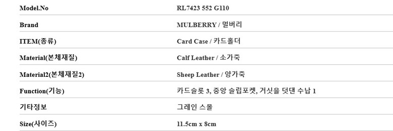 #리본즈코리아 #RL7423552G110 #[명품] #멀버리 #RL7423 #552 #G110 #RL7400 #205 #그레인 #스몰 #카드지갑 #여성 #지갑 #카드/명함지갑 #카드지갑홀더