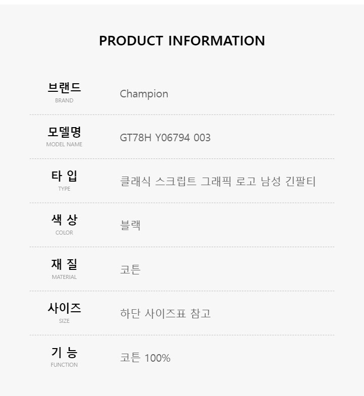 [럭스덕T] 챔피온 클래식 로고 남성 긴팔티셔츠 GT78H Y06794 003