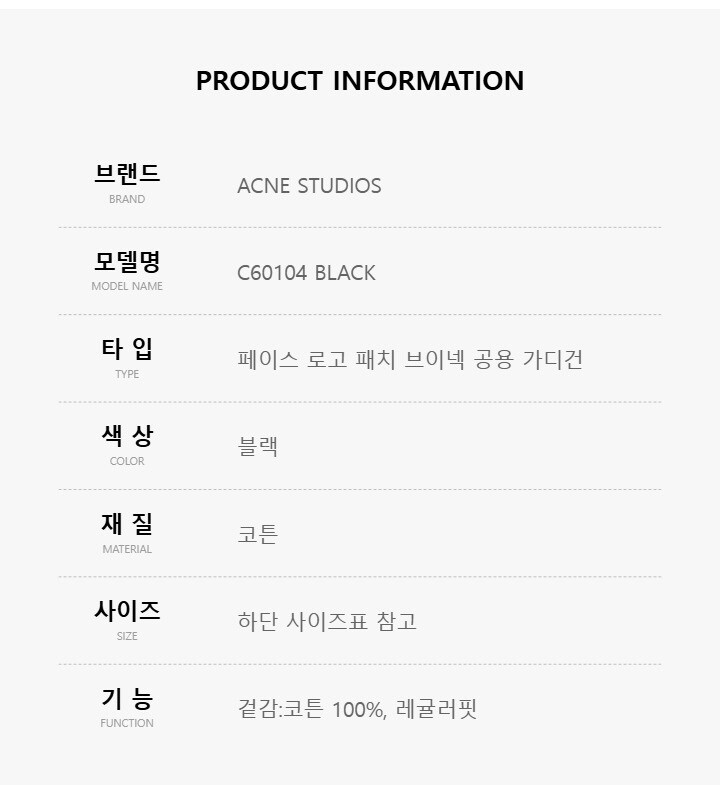 | 1. 제품 소재 (섬유의 조성 또는 혼용률을 백분율로 표시, 기능성인 경우 성적서 또는 허가서) | 상세페이지 참조 |