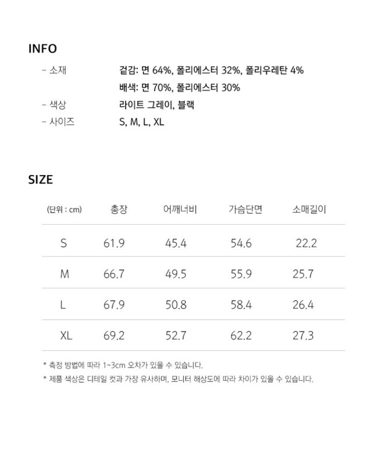 * 마네킹 모양에 따라 좌,우 기장&라인이 틀려 보일 수 있습니다 *