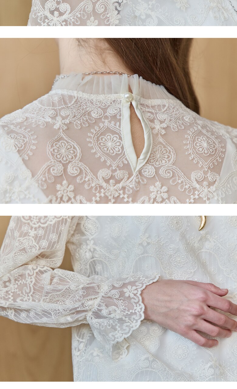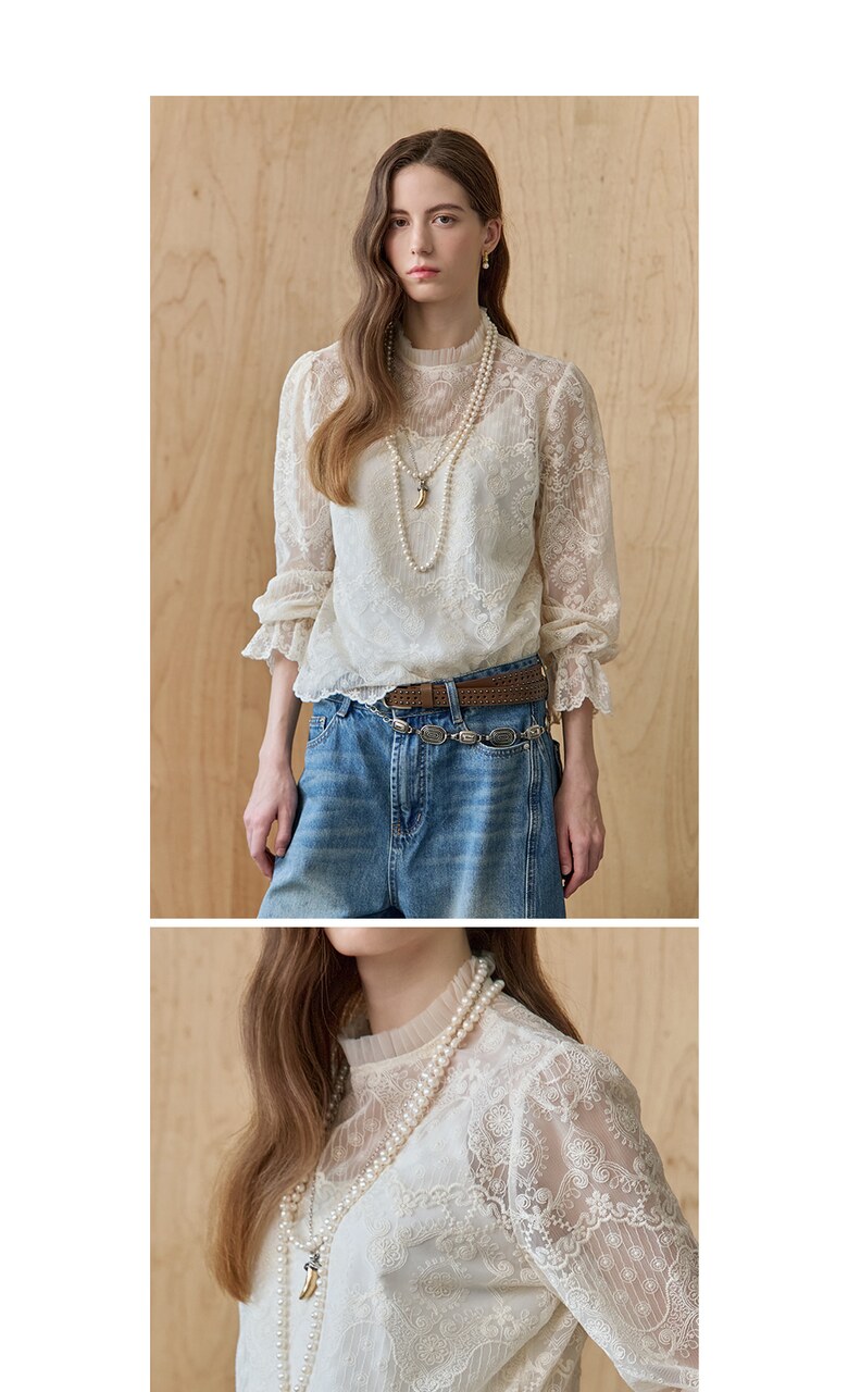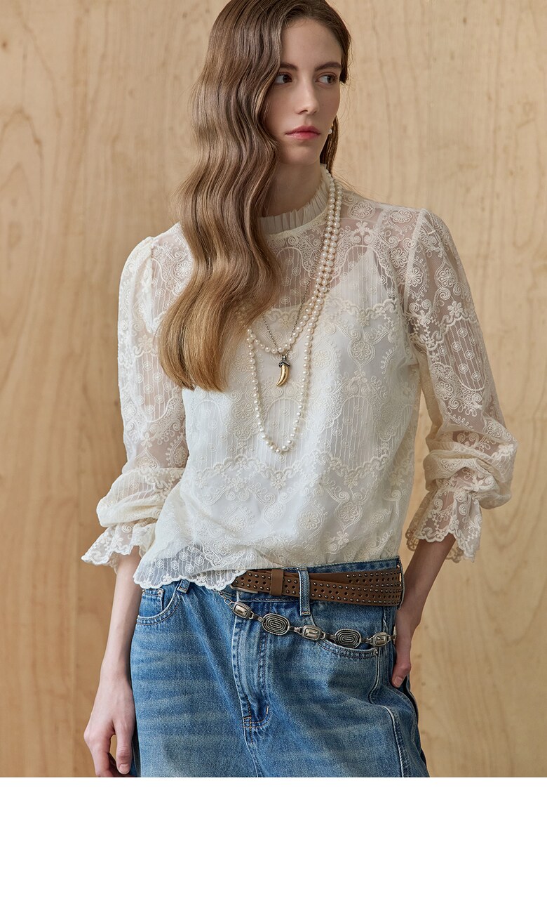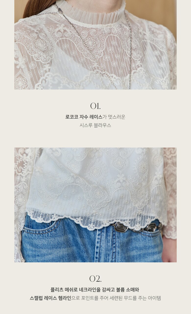 볼륨 있는 소매, 스캘럽 레이스 헴라인으로