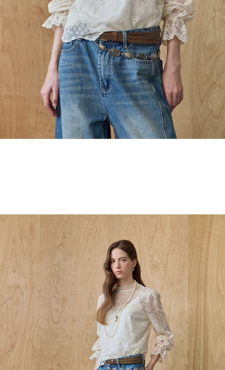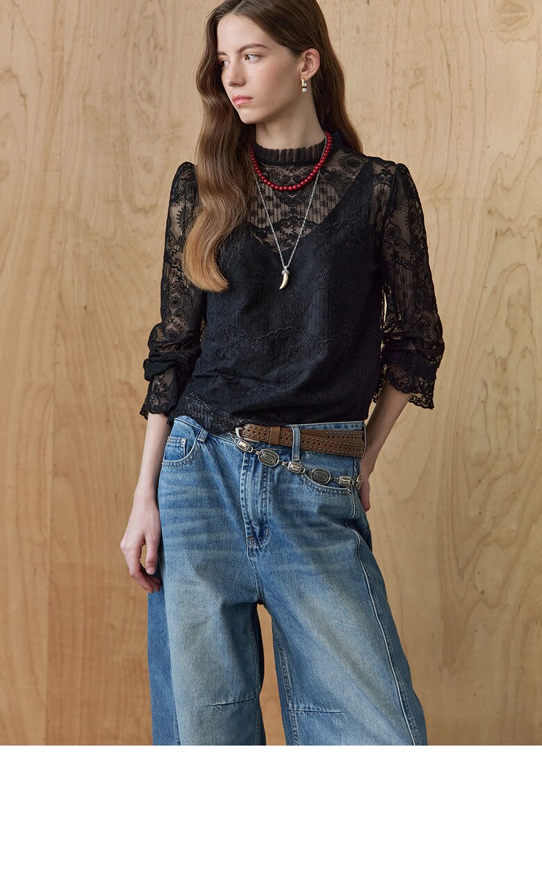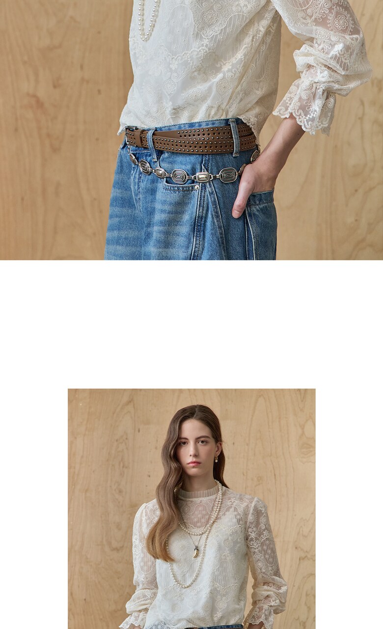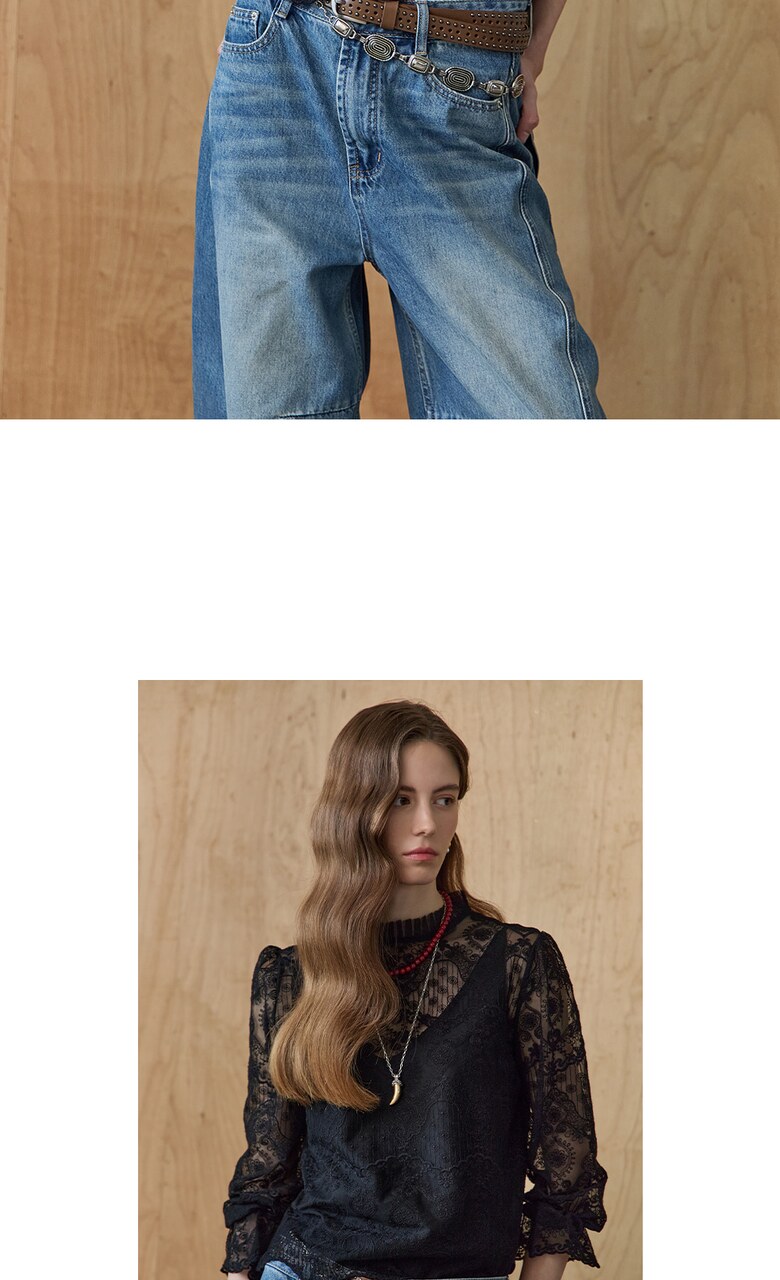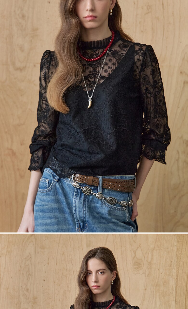 볼륨 있는 소매, 스캘럽 레이스 헴라인으로