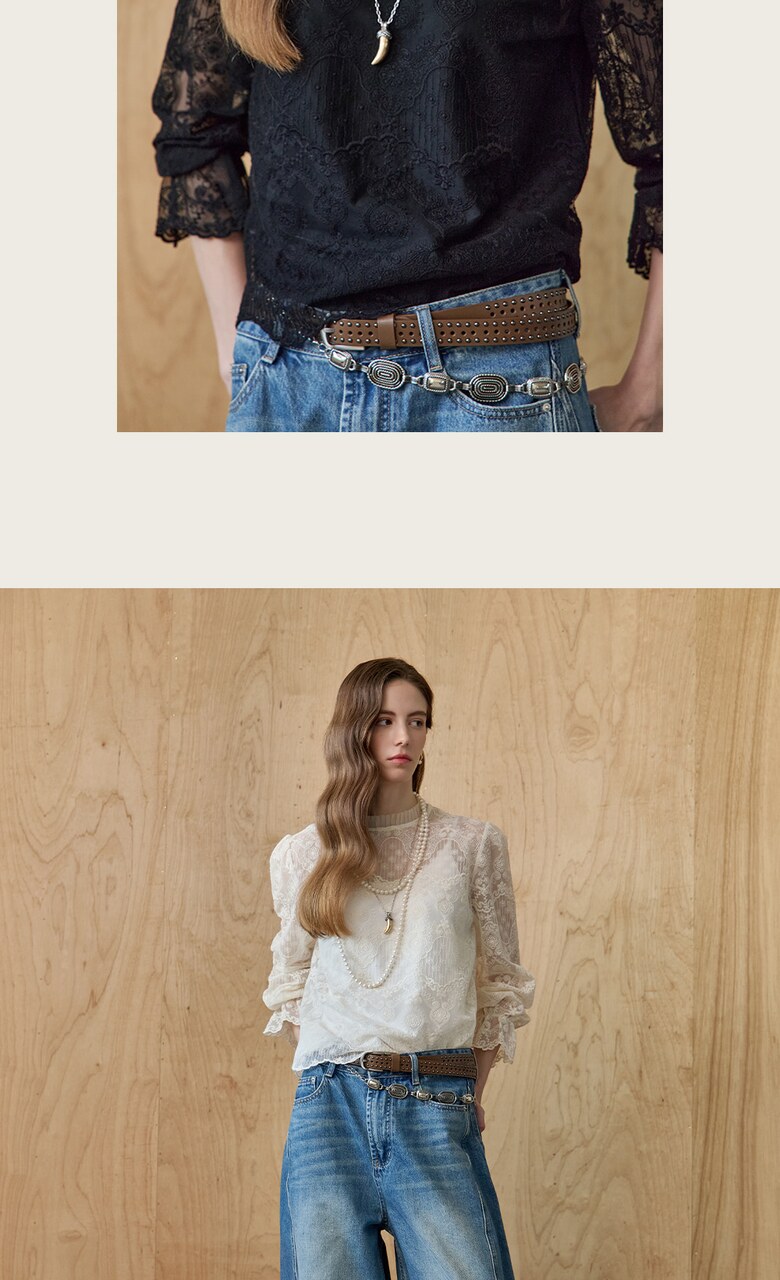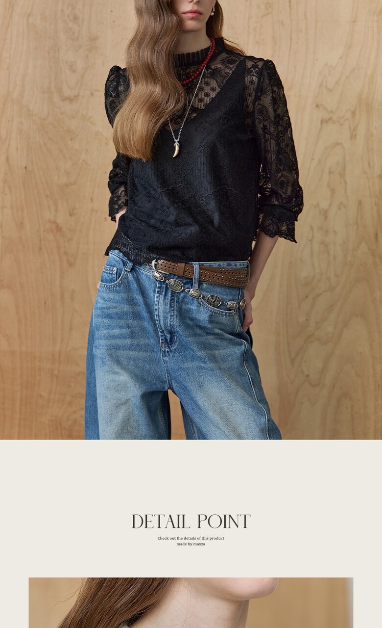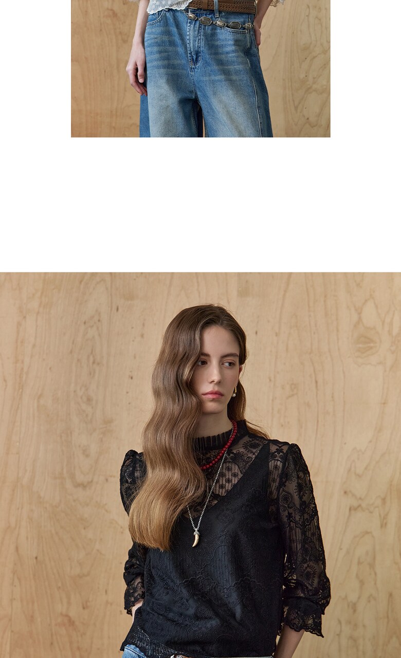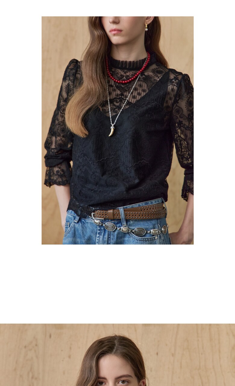볼륨 있는 소매, 스캘럽 레이스 헴라인으로