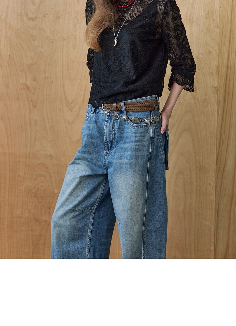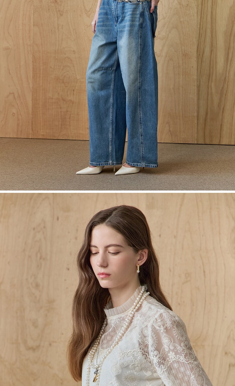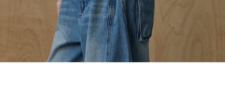 내추럴 워싱 아웃포켓 와이드 데님 팬츠