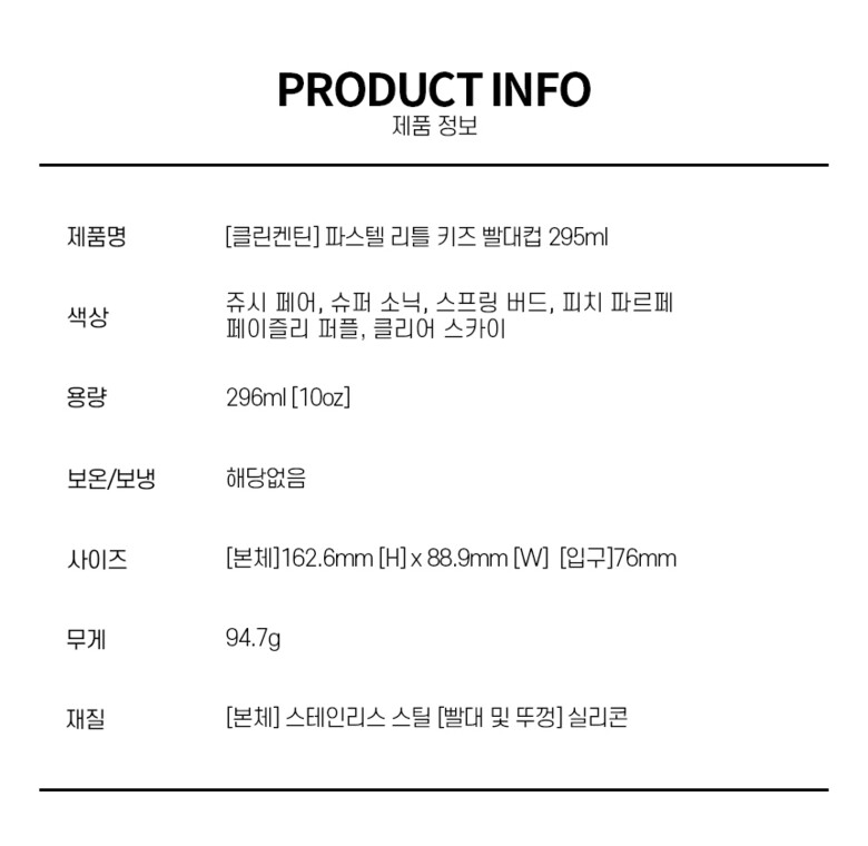 | 1. 품명 및 모델명 | [클린켄틴] 파스텔 리틀 키즈 빨대컵 296ml |