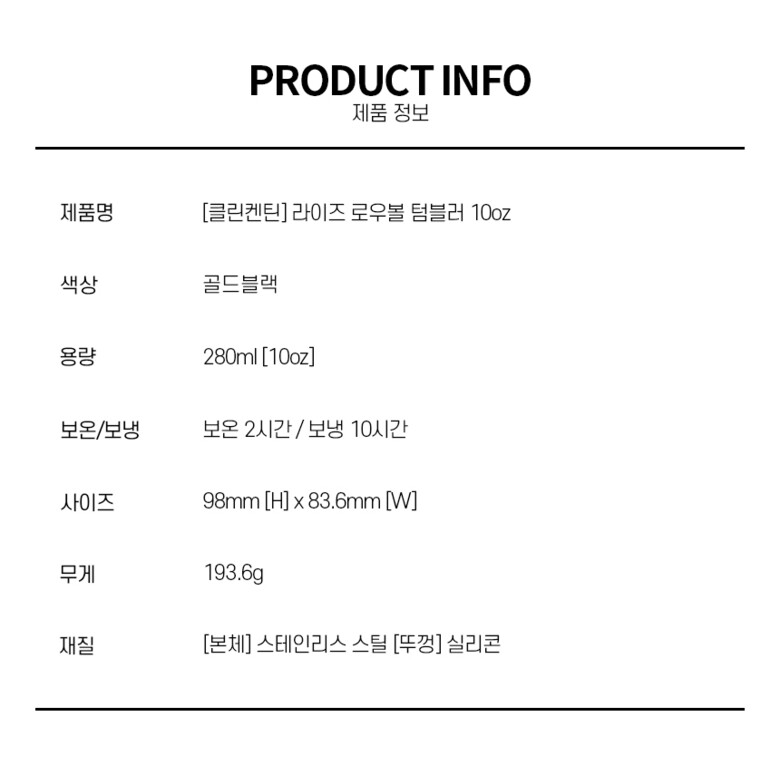 [클린켄틴] 라이즈 보온보냉 로우볼 280ml 골드블랙