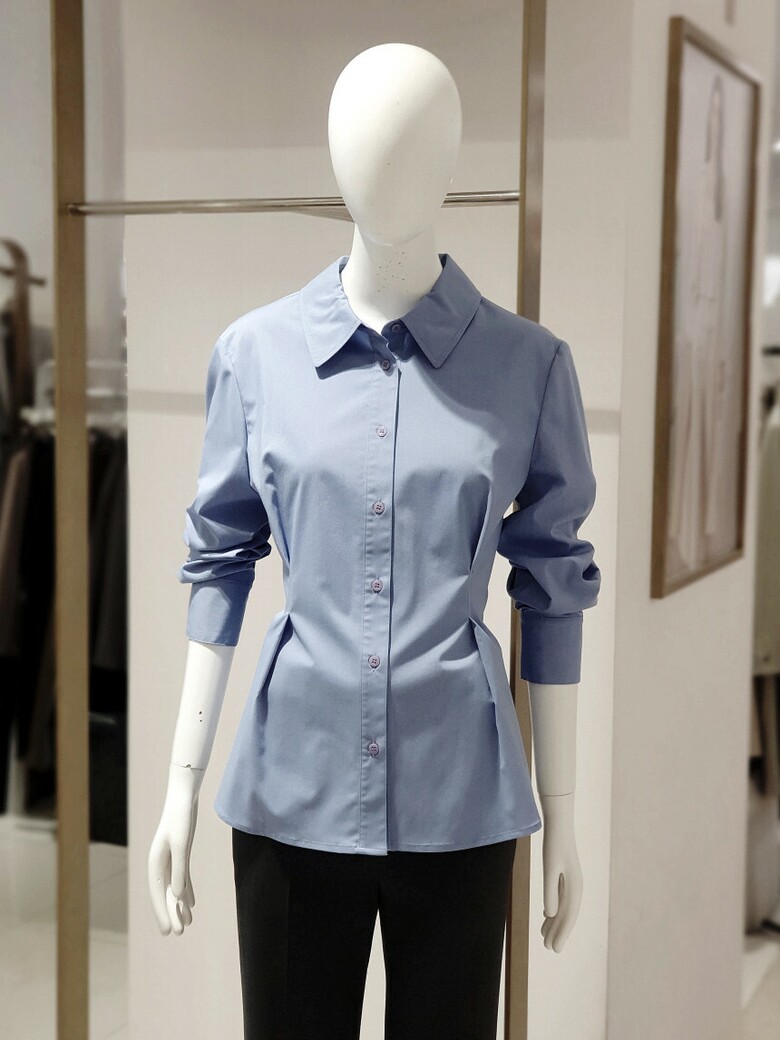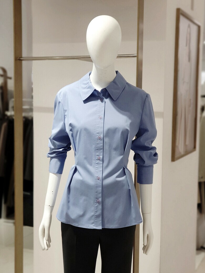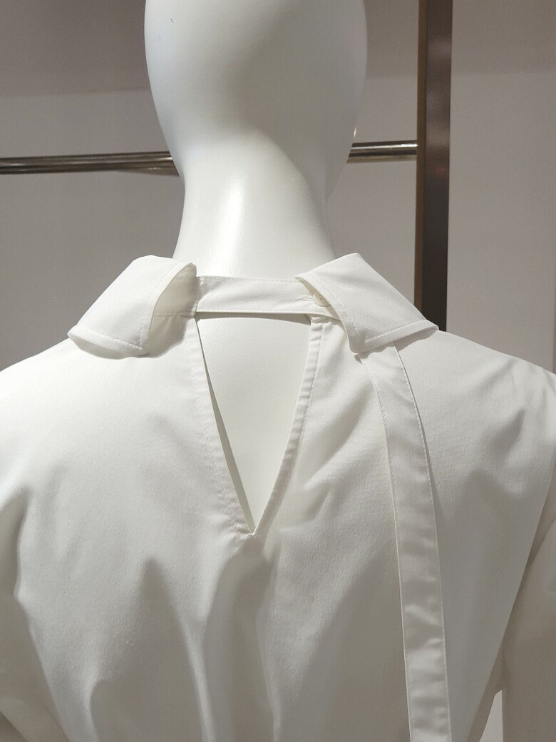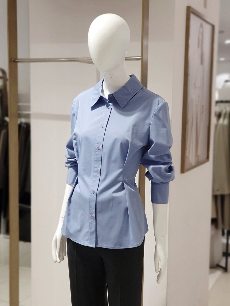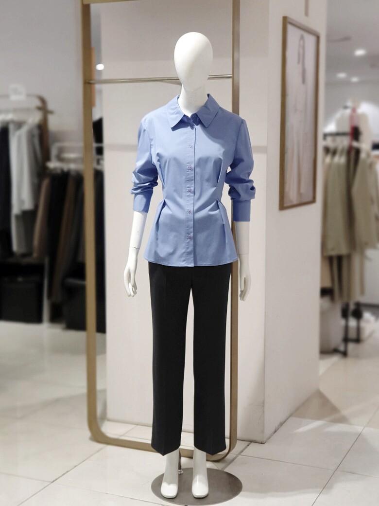 칼라 넥 라인에 웨스트 턱 디테일로 맵시 있게