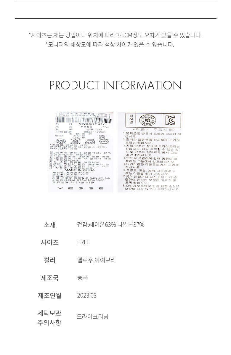 | 2. 색상 | YL_옐로우/IV_아이보리 |