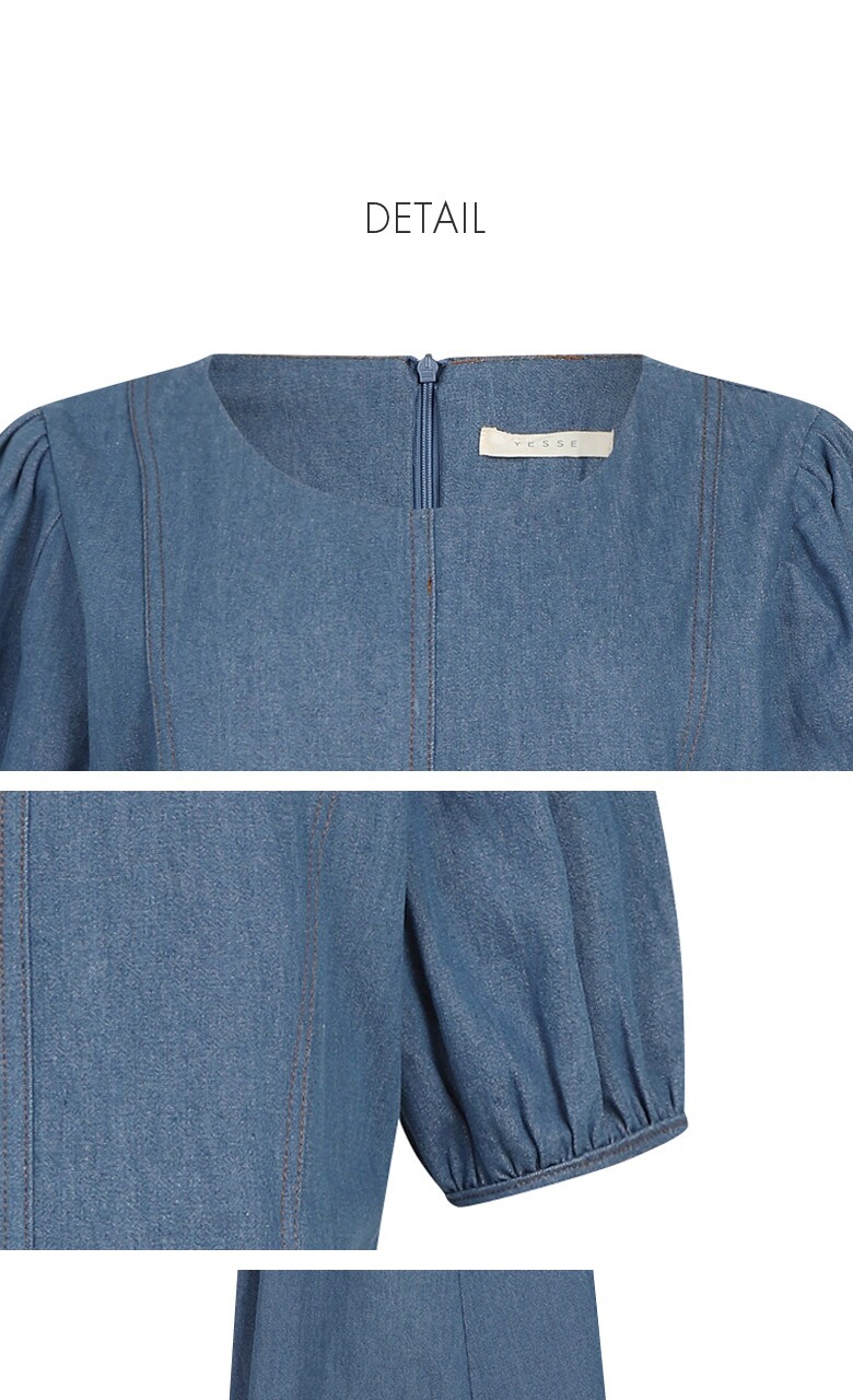 (예쎄) 데님 퍼프 소매 반팔 원피스(YW06OP42C)
