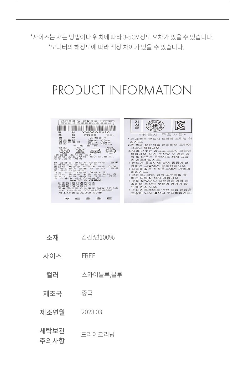 1. 제품 소재 (섬유의 조성 또는 혼용률을 백분율로 표시, 기능성인 경우 성적서 또는 허가서) | 상세페이지 참조 |