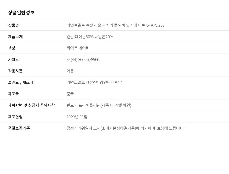 가먼트골프 여성 라운드 카라 풀오버 민소매 니트 GFKPD253