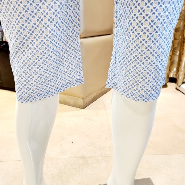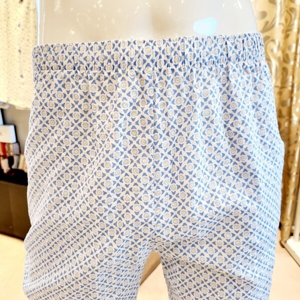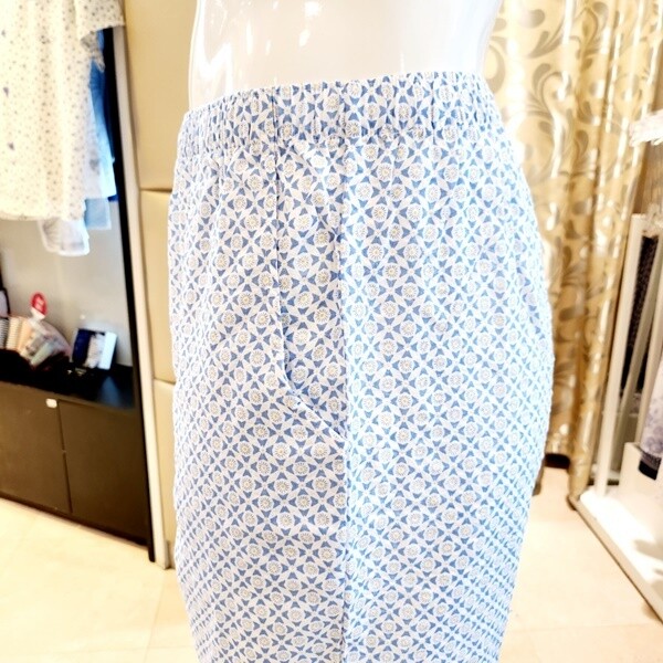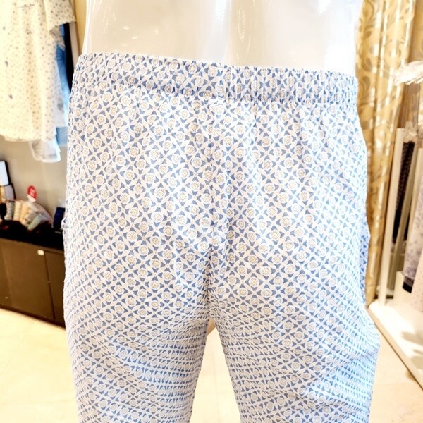 심플한 프린트를 사용한 남성용 홈웨어 바지입니다. 시원한 컬러감의 면레이온 소재를 사용하여 자연스러운 주름으로 몸에 닿는 감촉이 매우 좋습니다.?