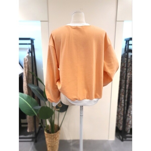 넥라인과 밑단 소매 레이어드를 한 듯한 배색 포인트로 더욱 멋스럽고 귀여운 분위기를 가진 상품입니다.