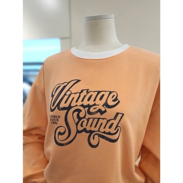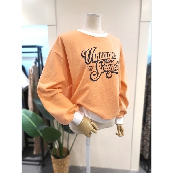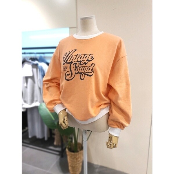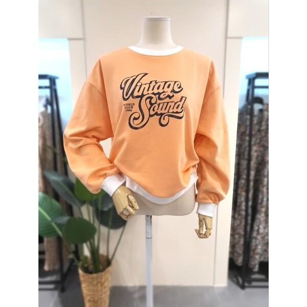 KETSP302OR_사운드 배색 맨투맨 티셔츠 오렌지