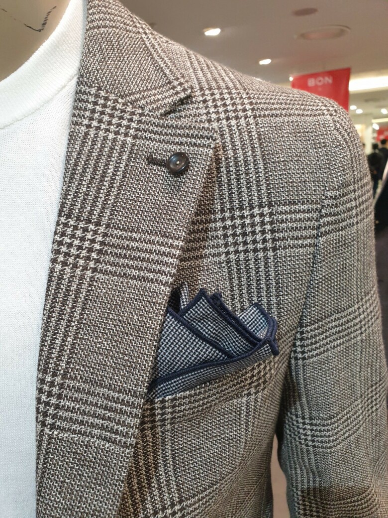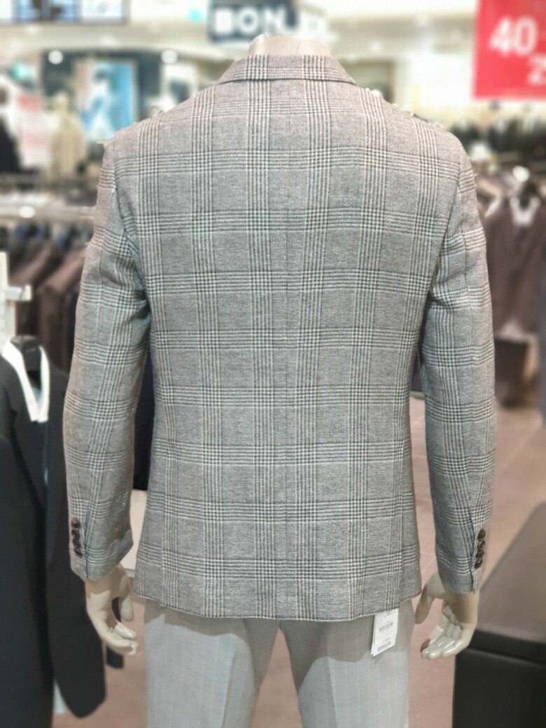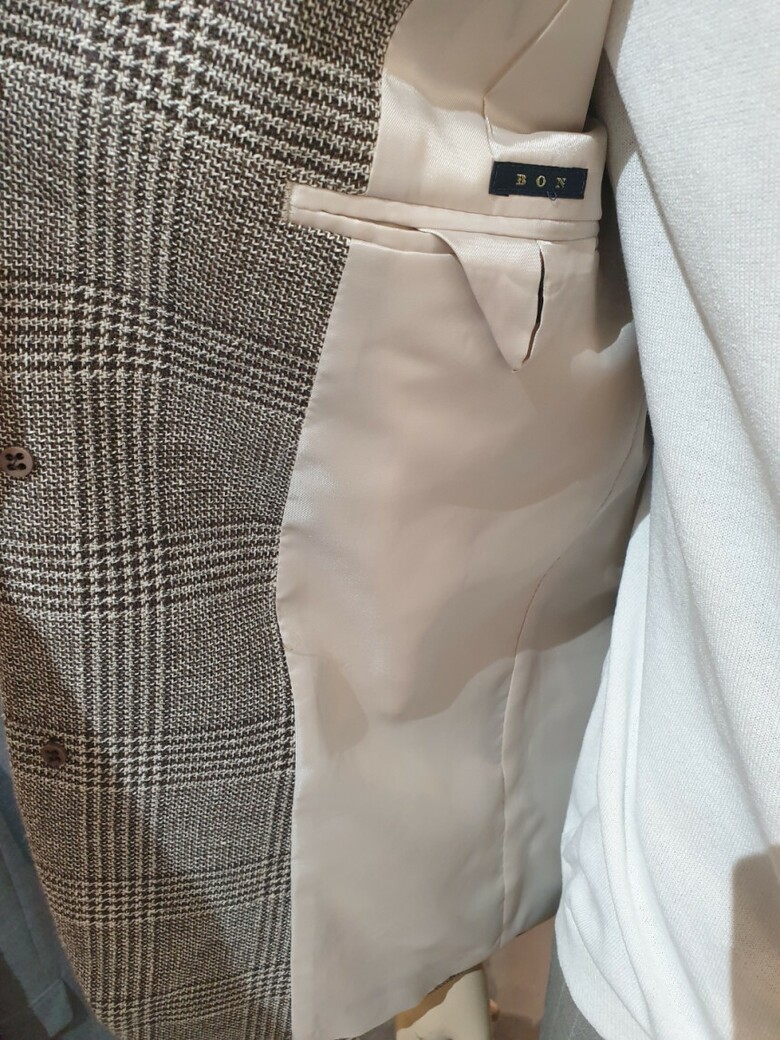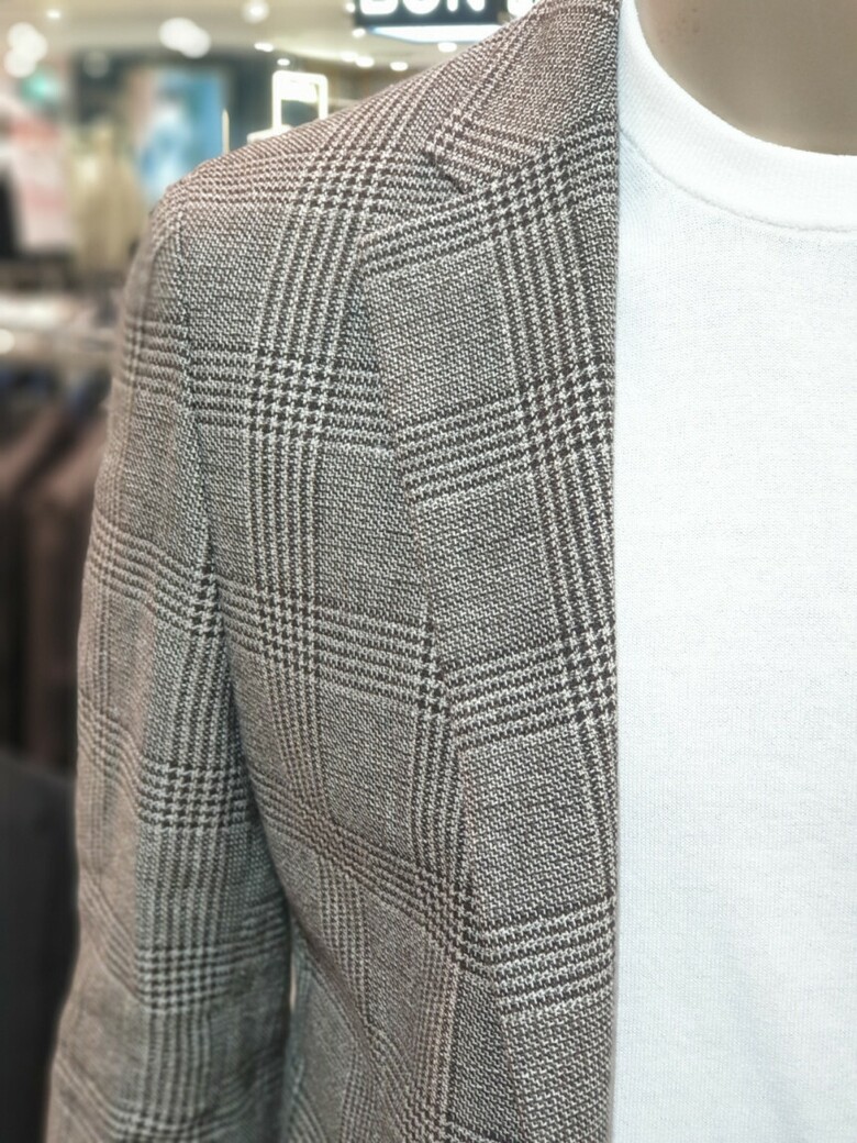 BON 25SS 브라운 이태리 직수입 3버튼 뮬리네 체크 캐주얼 자켓BNESEA207BR