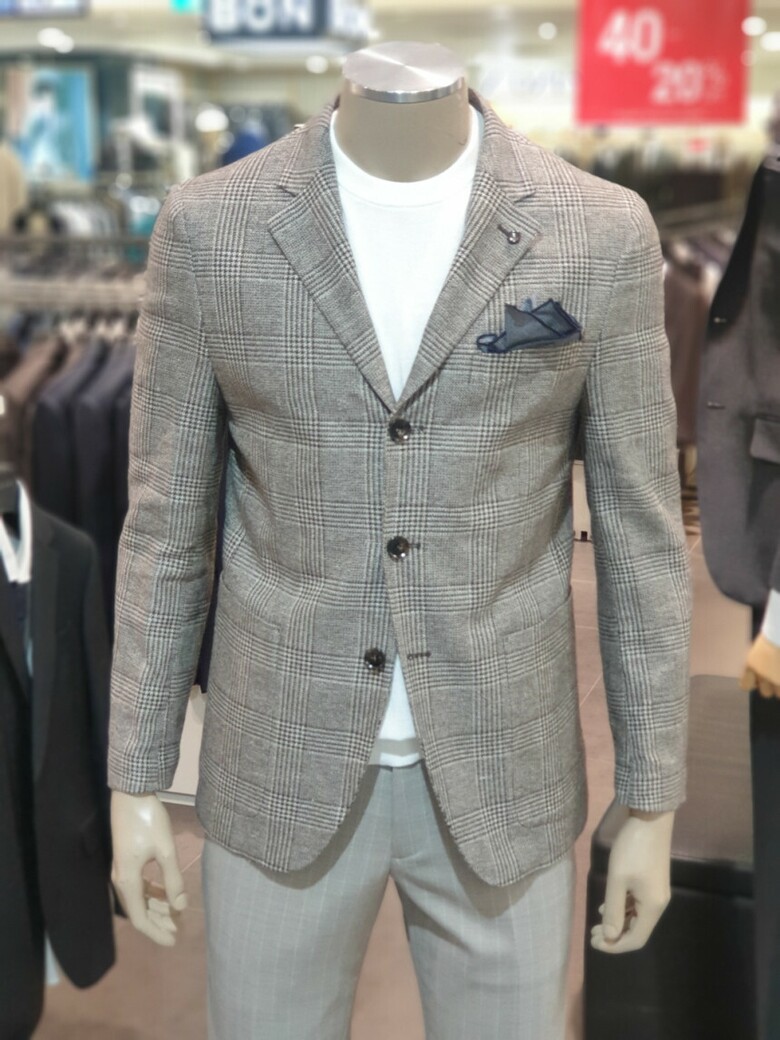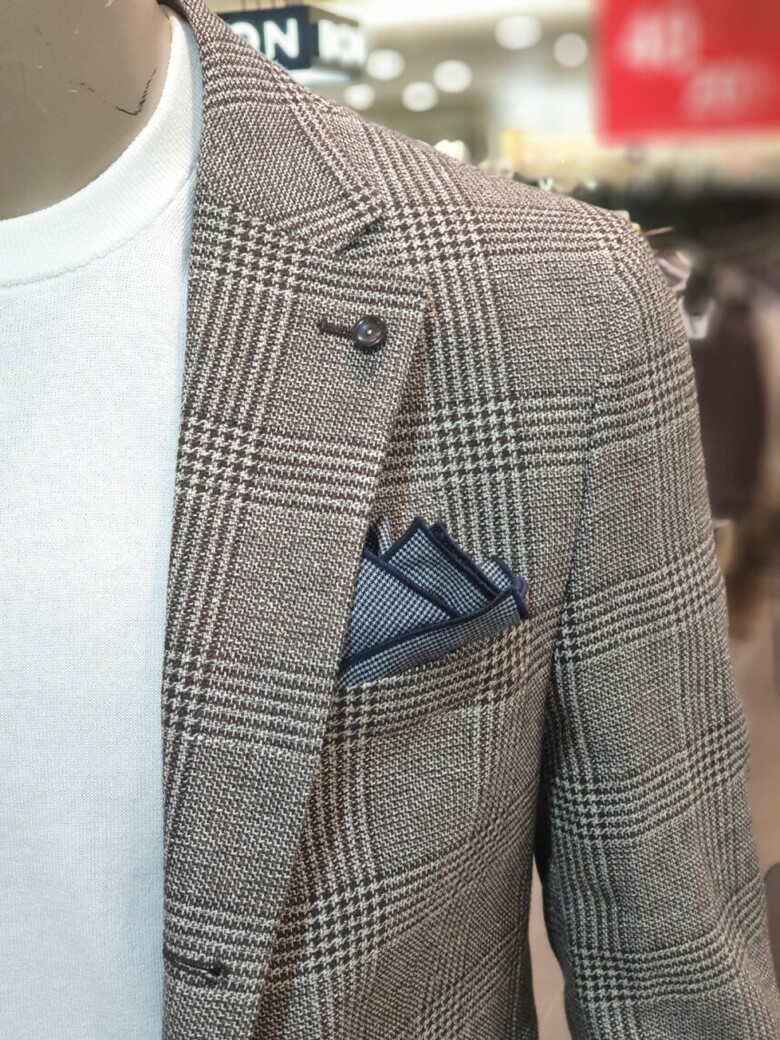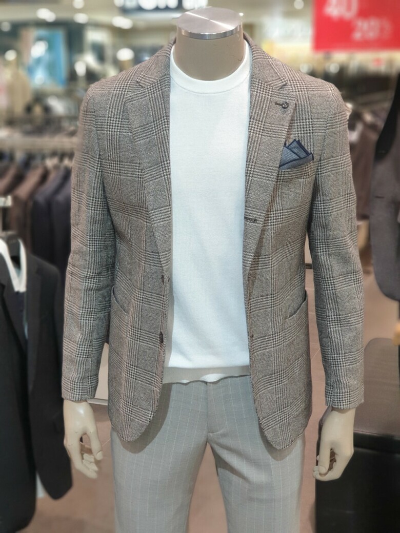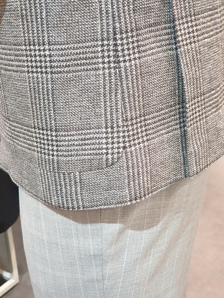 BON 25SS 브라운 이태리 직수입 3버튼 뮬리네 체크 캐주얼 자켓BNESEA207BR