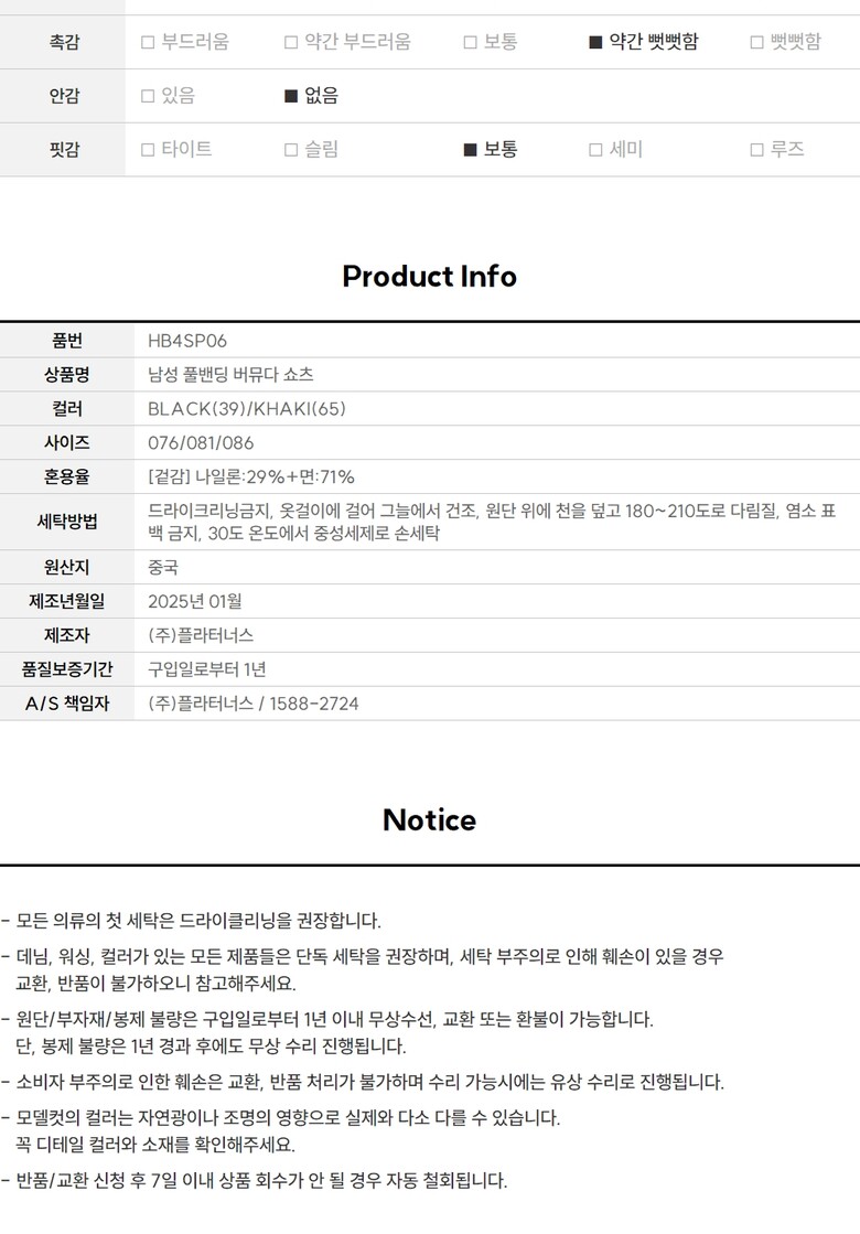 | 6. 세탁방법 및 취급시 주의사항 | 상세페이지 참고 |